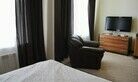 Двуспальная кровать, диван, кресло, телевизор с плоским экраном, комод, тумбочки, холодильник, сплит-система, чайник, с/у совмещенный (душ+таулет)