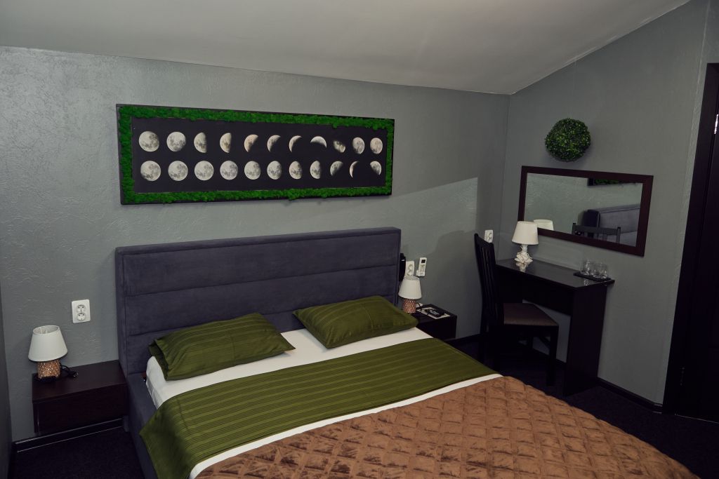 Отель «Луна» расположен в тихом районе города Орск, в шаговой доступности от продуктового магазина «Пятёрочка», аптеки «Апрель», кафе «Мантра» и остановки общественного транспорта. В цветовой палитре отеля преобладают серые и темные тона, которые уравновешивают зелёный и мятные оттенки, создавая атмосферу свежести, спокойствия и уюта. В отеле 7 комфортабельных номеров - различного класса и ценовой категории, которые оснащены индивидуальными душевыми комнатами, кондиционерами, гардеробными, интерактивным телевидением (более 250 каналов), высокоскоростным Wi-Fi интернетом, рабочими столами и стульями, кроватями, бельем и предметами гигиены. В оформлении отеля присутствуют лунные пейзажи. Для удобства проживающих на территории отеля есть общая кухня, оснащенная бытовой техникой и посудой. Отель предоставляет услуги прачечной, а в ночное время действует «режим тишины». На территории отеля имеется своя парковка, в том числе закрытое парковочное место для особых гостей. В пешей доступности от отеля находятся супермаркеты, магазины, парк, кафе, рестораны, аптеки, спортивные залы.