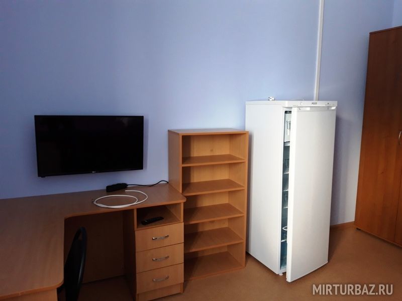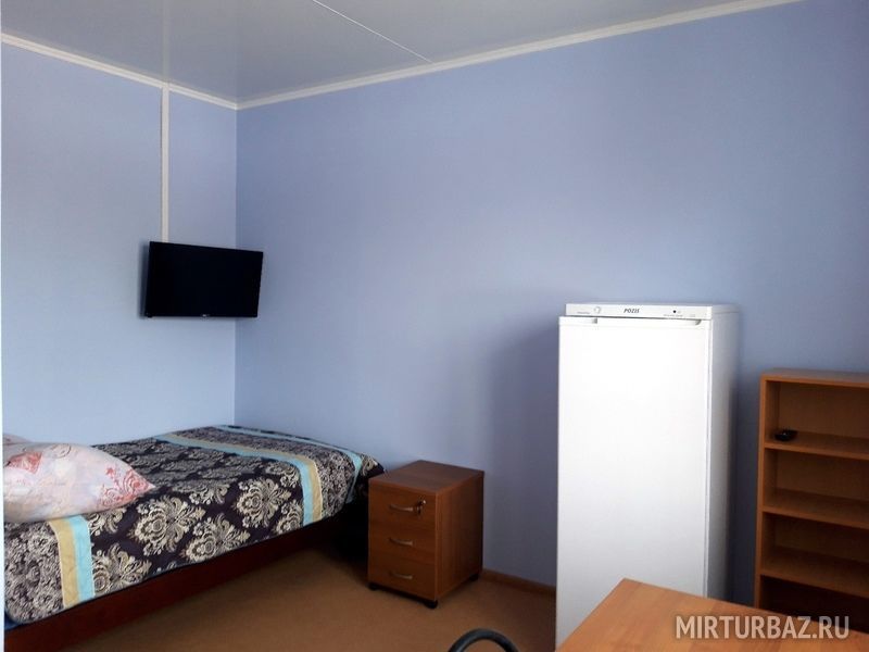 В номере 1 полутораспальная кровать, стол, тумба, шкаф, полотенца, ТВ-40 каналов, холодильник, кондиционер, с/у, душ.