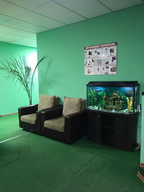 В общем доступе установлен кулер с питьевой водой. У стойки регистрации обустроена лаундж-зона. К корпусу примыкает гостевая автостоянка.