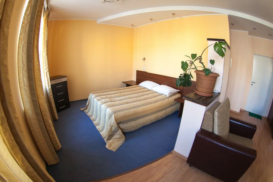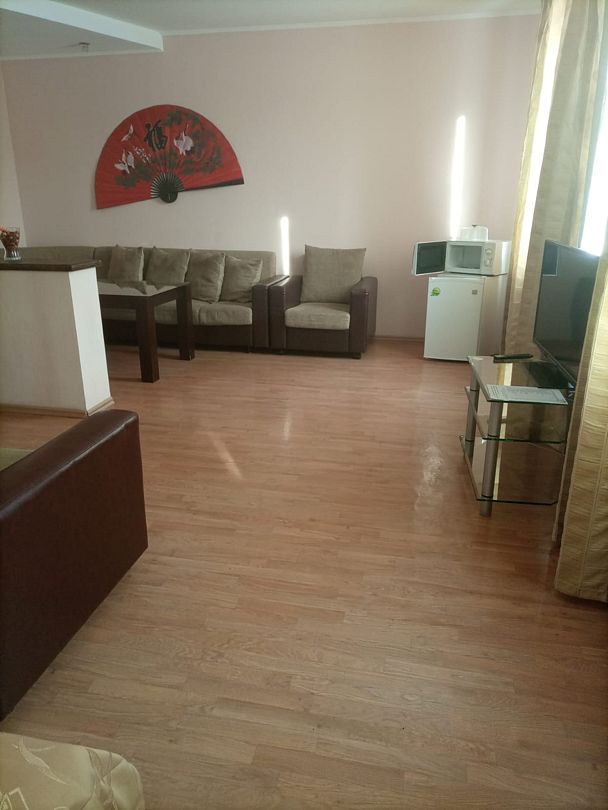 Путешествие по работеПонравилосьНебольшой отель недалеко от вокзала. Доступная цена, чистое постельное белье, удобный матрас на кровати. Люкс оборудован кухней со всей необходимой бытовой техникой. Очень вкусный завтрак, за него отдельное спасибо. Сосиска и блинчики, входящие в один из видов завтрака, кстати, достойного качества. Хотелось бы, чтобы обновили полотенца, постель не застилали покрывалом (оно не совсем привлекательно) и в люксе были одноразовые тапочки, площадь большая, ходить босиком некомфортно. В целом тихо, спокойно, уютно, чисто, впечатления остались самые положительные.