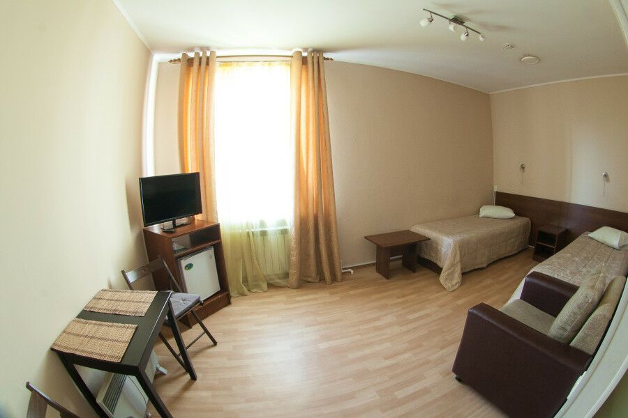 Отель размещен в одном здании с кафе. Жилой фонд включает несколько категорий номеров, полностью подготовленных к заселению постояльцев. Каждая комната уютно обставлена, оснащена удобными спальными местами, необходимым комплектом мебели и техники, собственным санузлом. Гостям доступно подключение к Wi-Fi.