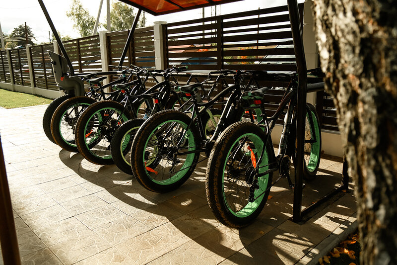 Снег, песок, трава – для фэтбайка это не преграда, а обычные условия эксплуатации. Отдыхающие могут взять велосипед на прокат бесплатно, просто обратившись к администратору. Есть возможность установки детского кресла.