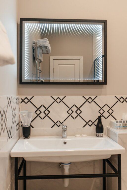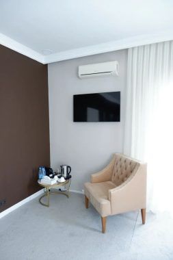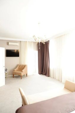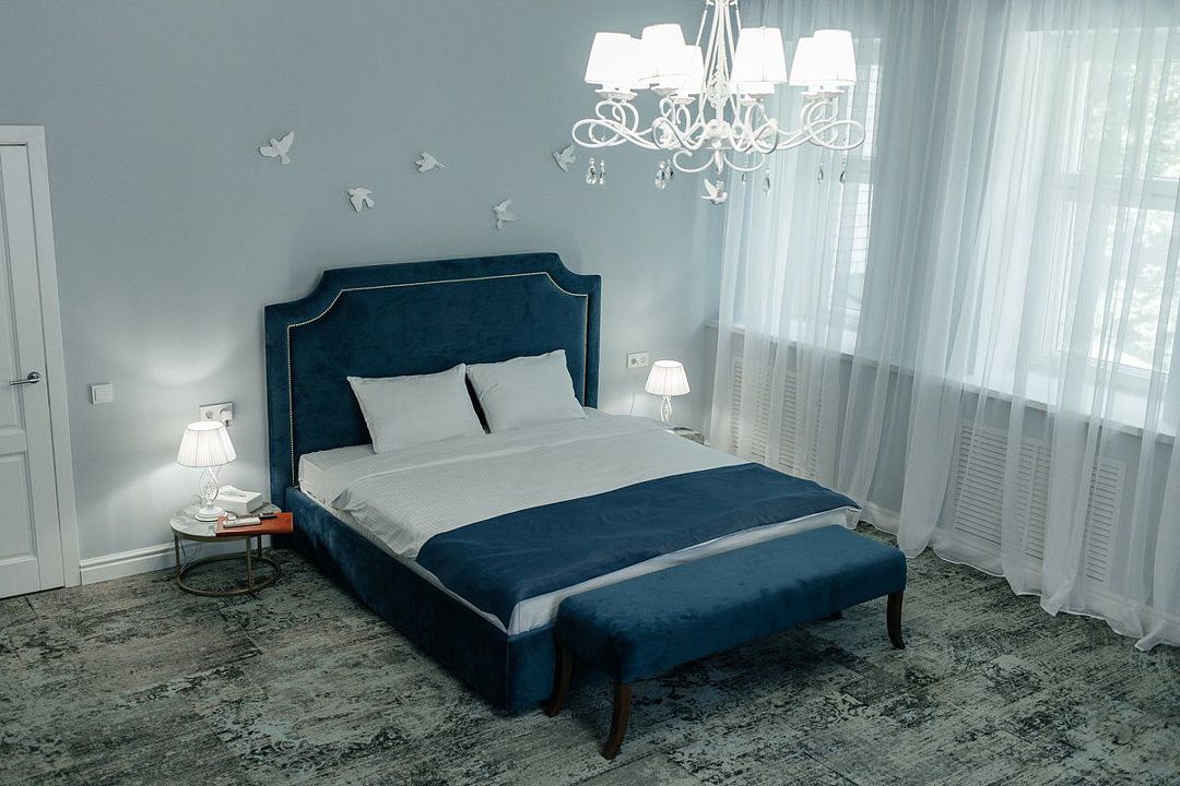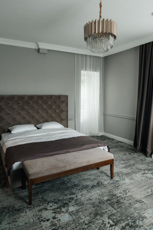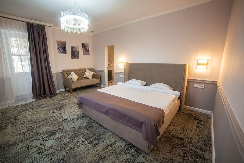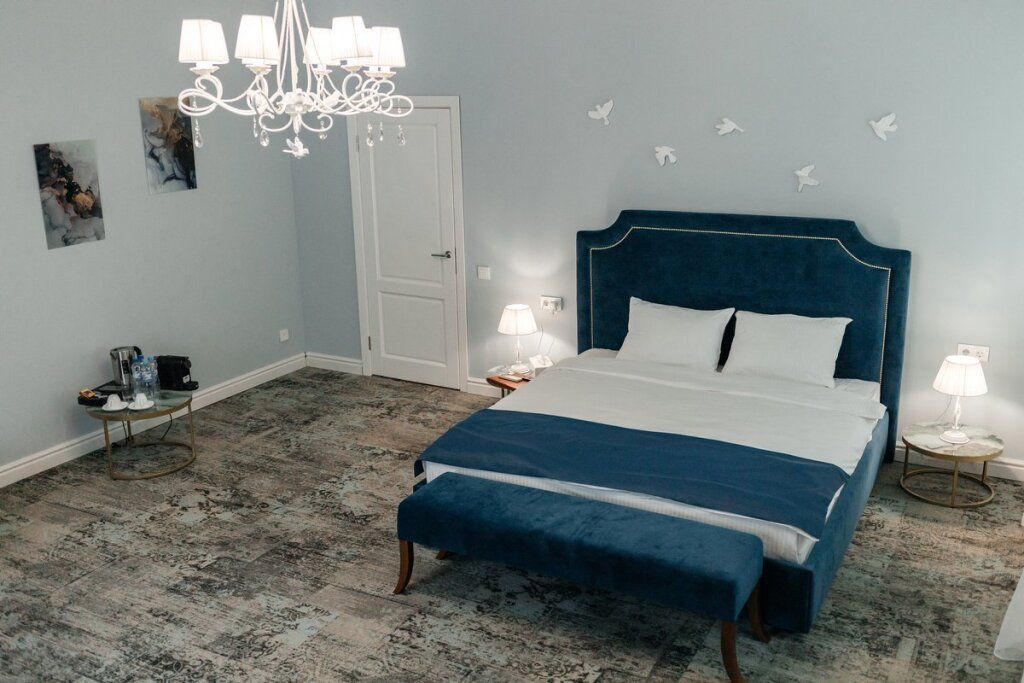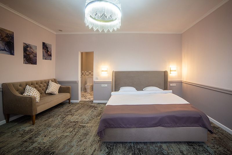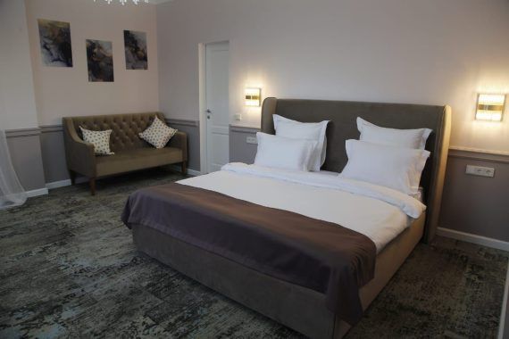 В комнатах современный интерьер, выдержанный в пастельной цветовой гамме с использованием благородных серых оттенков. Номера оснащены индивидуальным санузлом, кондиционером, всей необходимой бытовой техникой, в том числе имеется кофемашина.