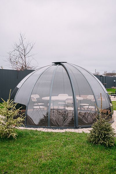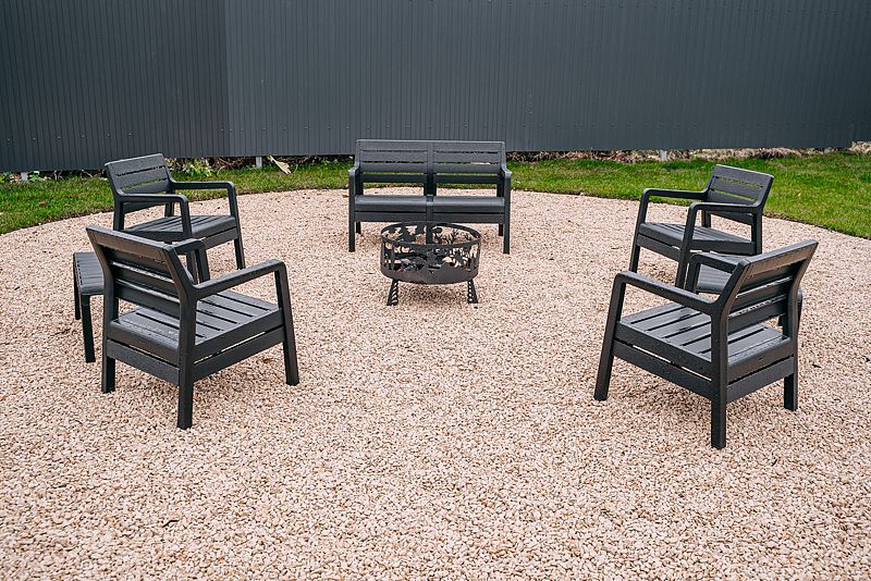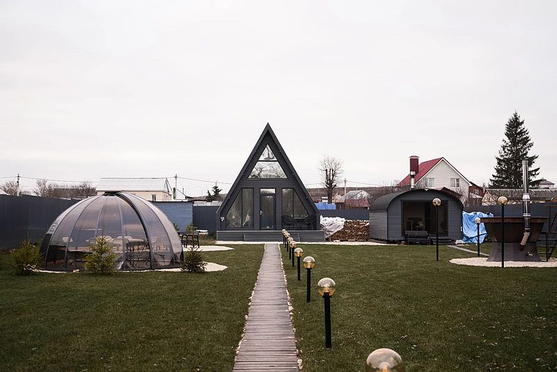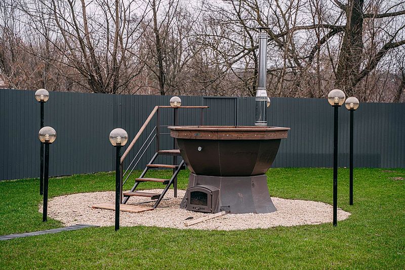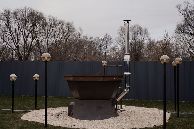 На территории установлена зона патио с мангалом и костровой чашей, алтайский чан и русская баня на дровах.