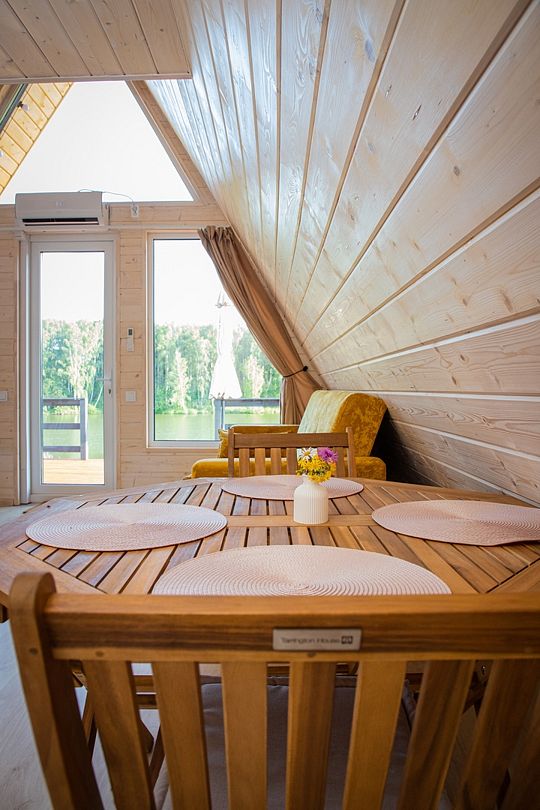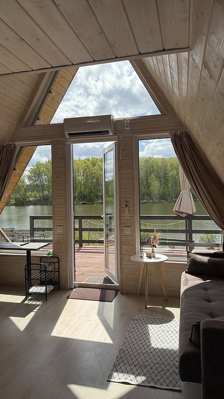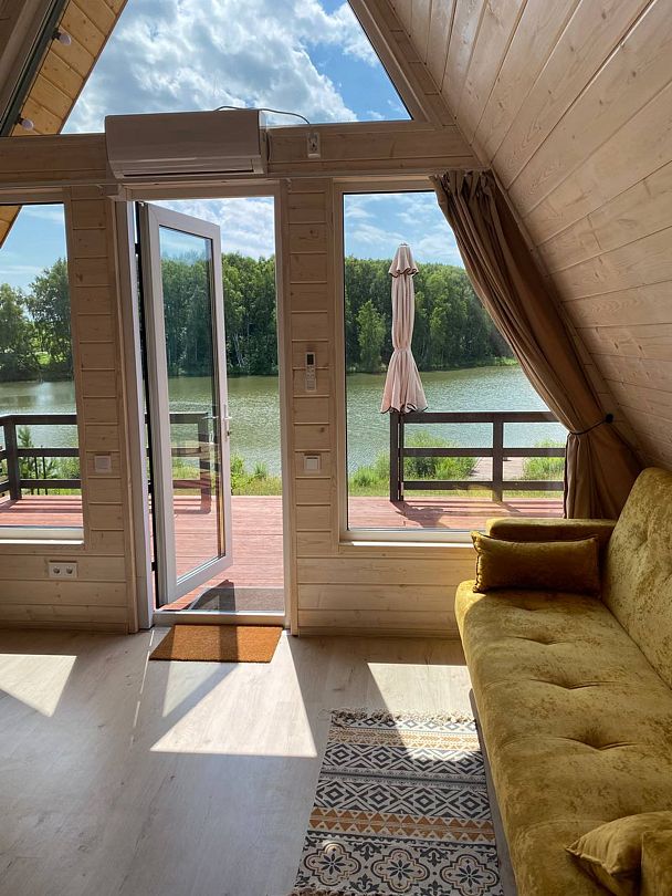 4 уютных домика в стиле а-frame на берегу живописного пруда, окруженного березовым лесом в 10 минутах от города Орла. Идеальное сочетание для тех, кто хочет ощутить природу во всей её красе, но не готов расстаться с комфортом.