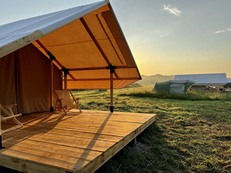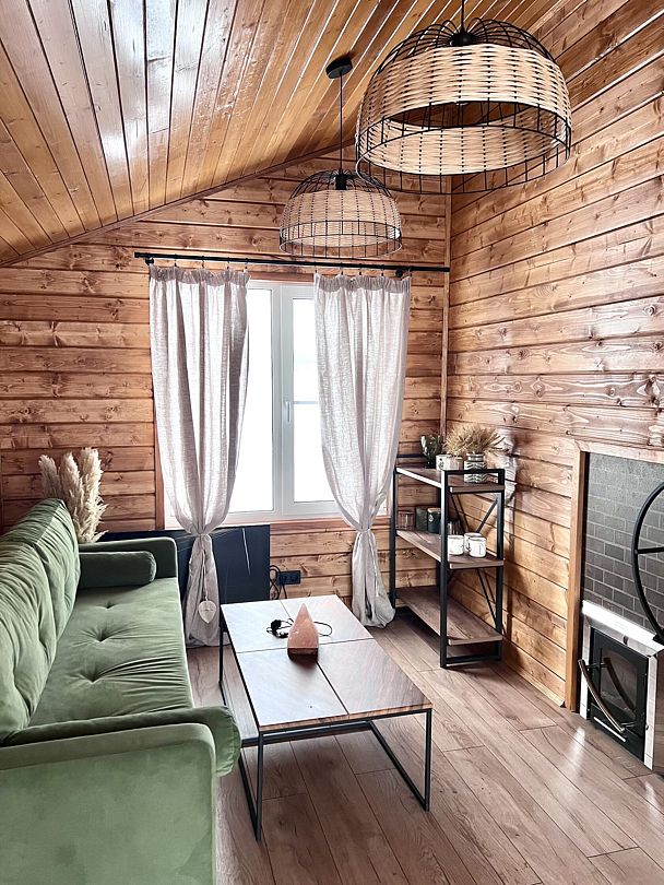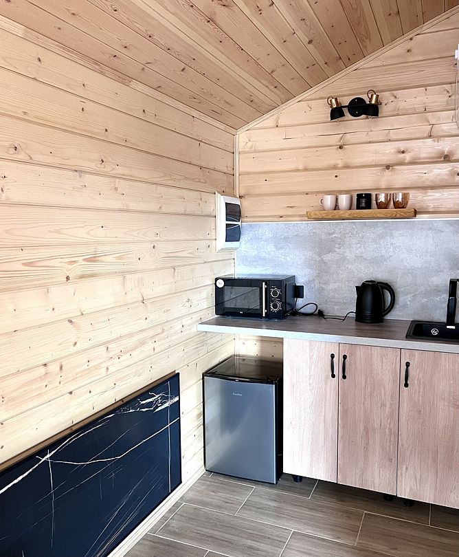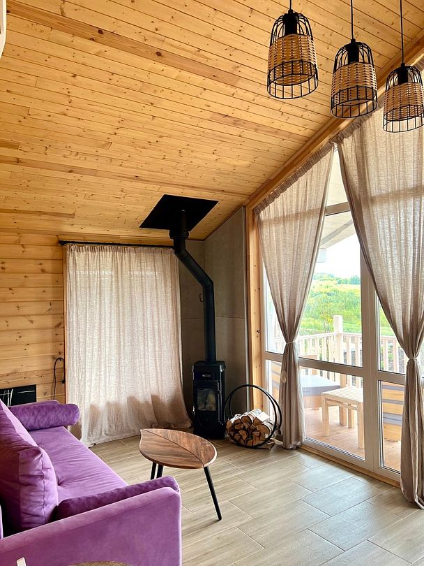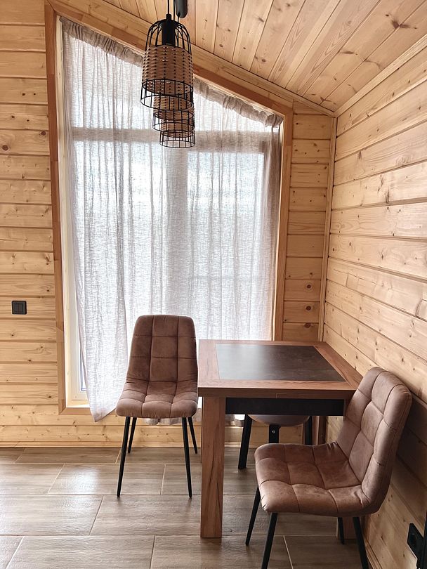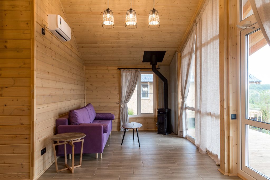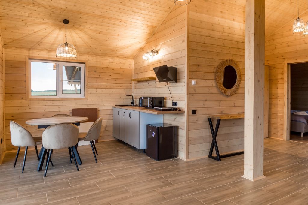 Уютные деревянные коттеджи с террасами и панорамным видом на окрестности предлагают комфортное размещение с удобными кроватями, обновлёнными ванными комнатами и полностью оборудованными кухнями. Тепло домашнего очага обеспечит печь, а уютную атмосферу — интерьер в натуральных древесных тонах. Для любителей отдыха на природе предлагаются комфортабельные сафари-тенты.
