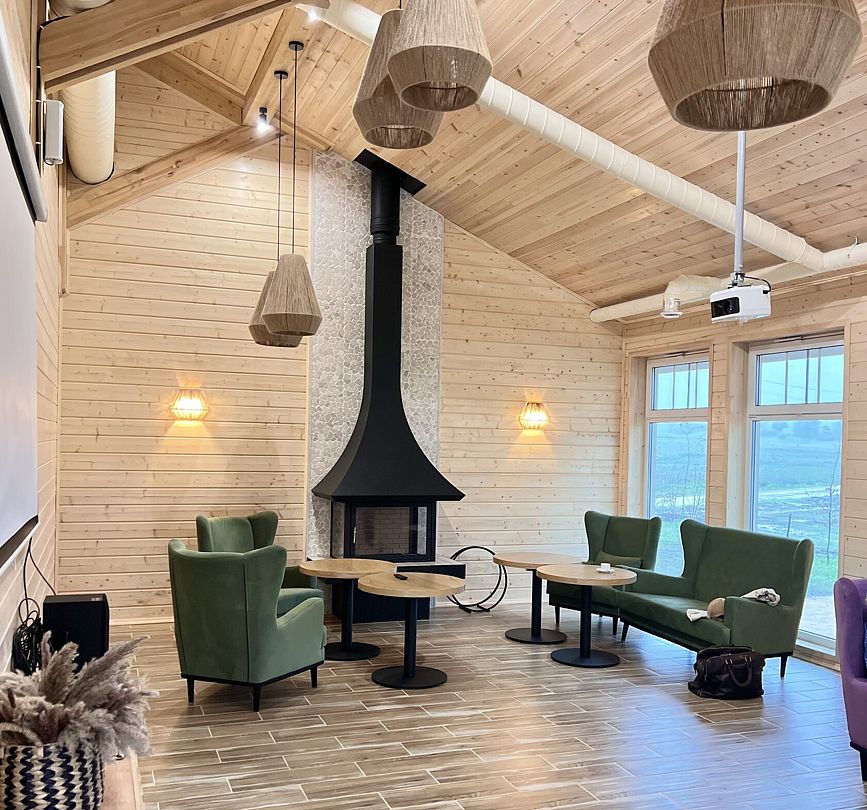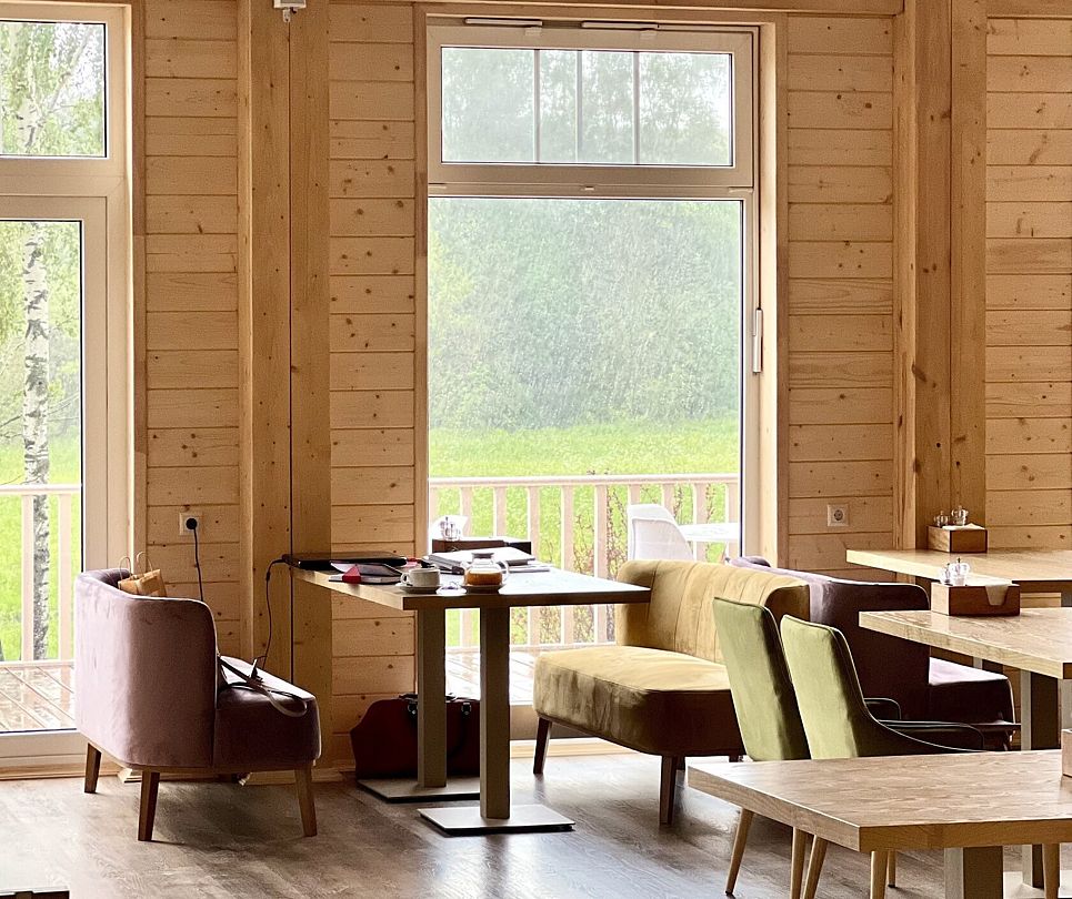 На территории отеля работает ресторан с фермерскими блюдами, лаундж-зона с проектором, камином и настольными играми, где вас ждёт фирменный лавандовый чай. Летом к вашим услугам спортивные площадки (волейбол, настольный теннис), зимой — каток и лыжная трасса. Дети смогут весело провести время на игровой площадке, а взрослые — расслабиться в бане с купелью.