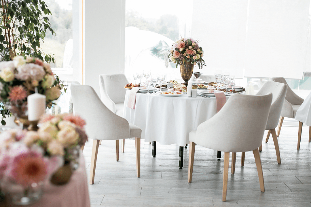 В стоимость аренды входят столы, стулья и скатерти.