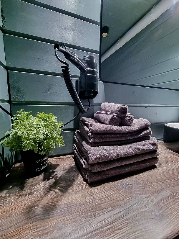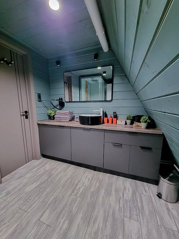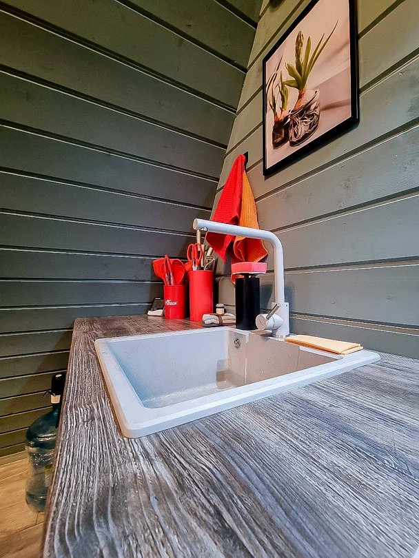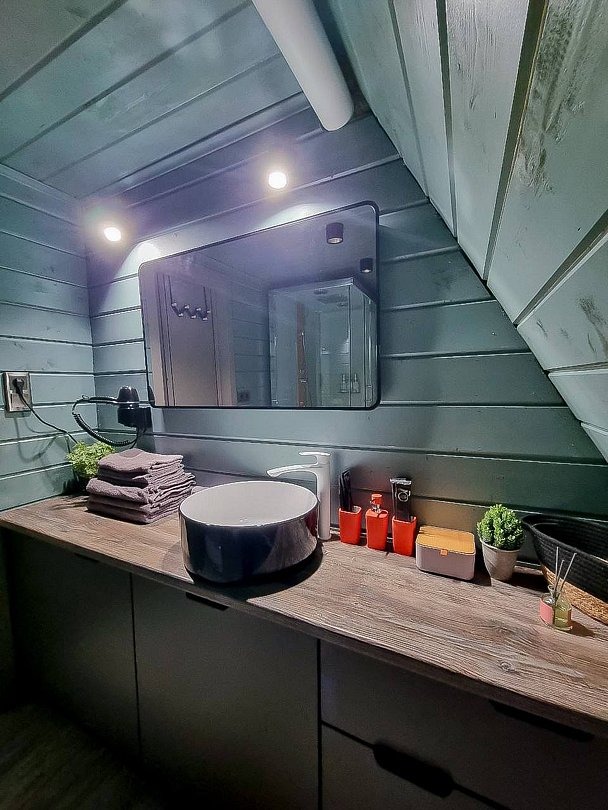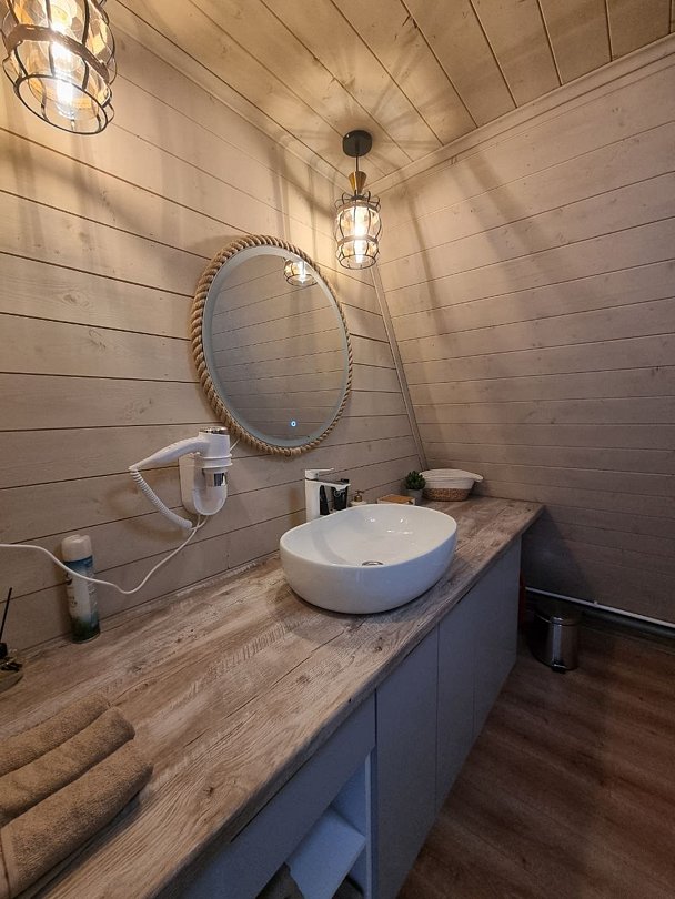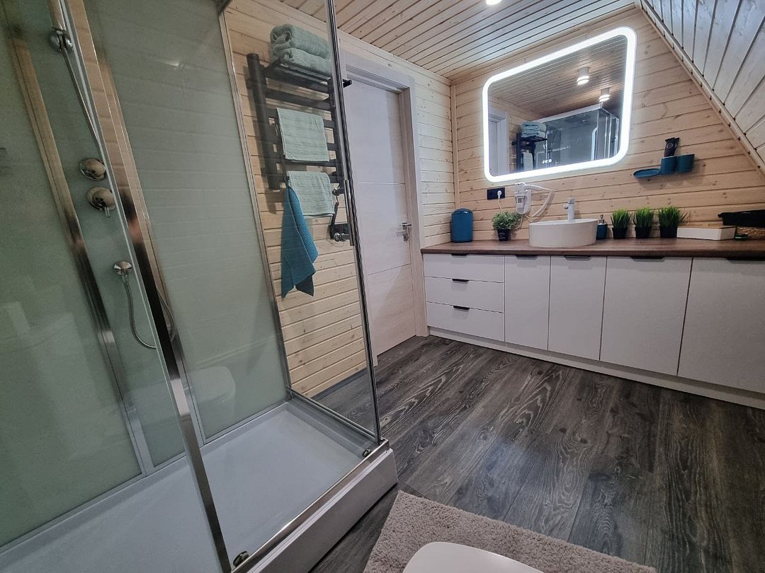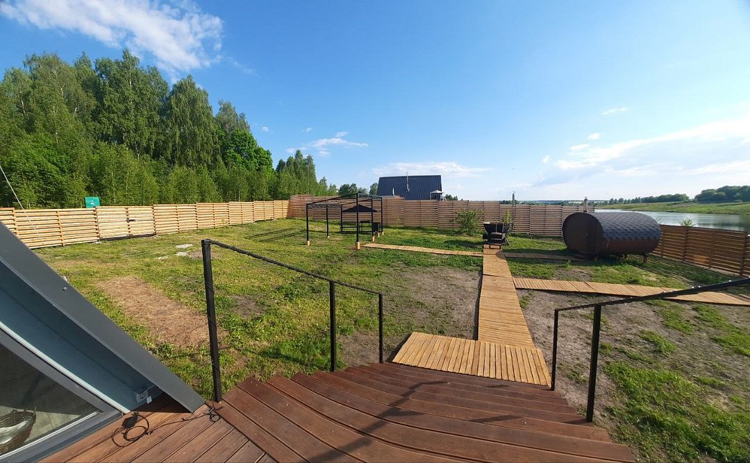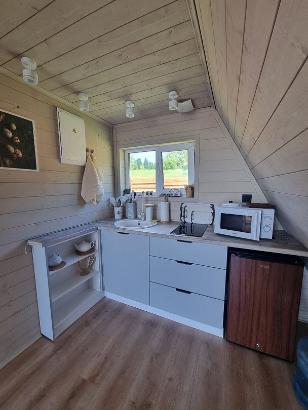 Каждый домик оборудован всем необходимым для комфортного отдыха. На территории вы найдете купель на дровах и баню, где можно отлично расслабиться и восстановить силы.