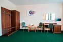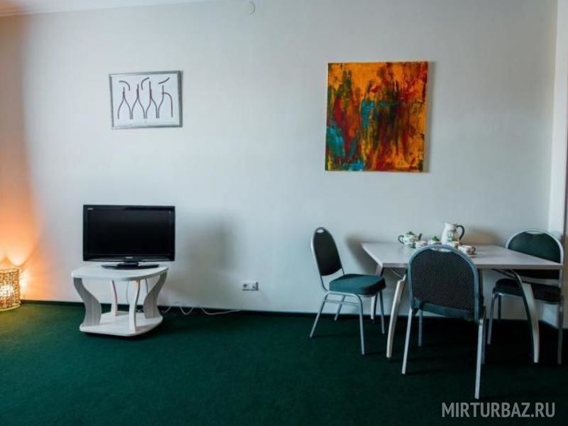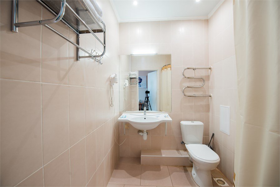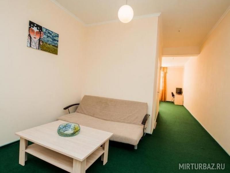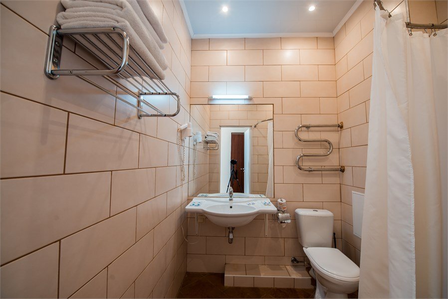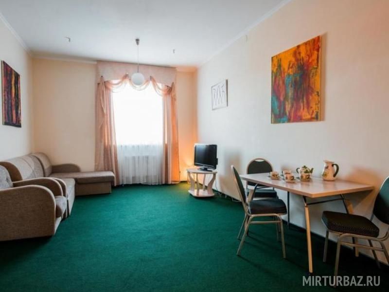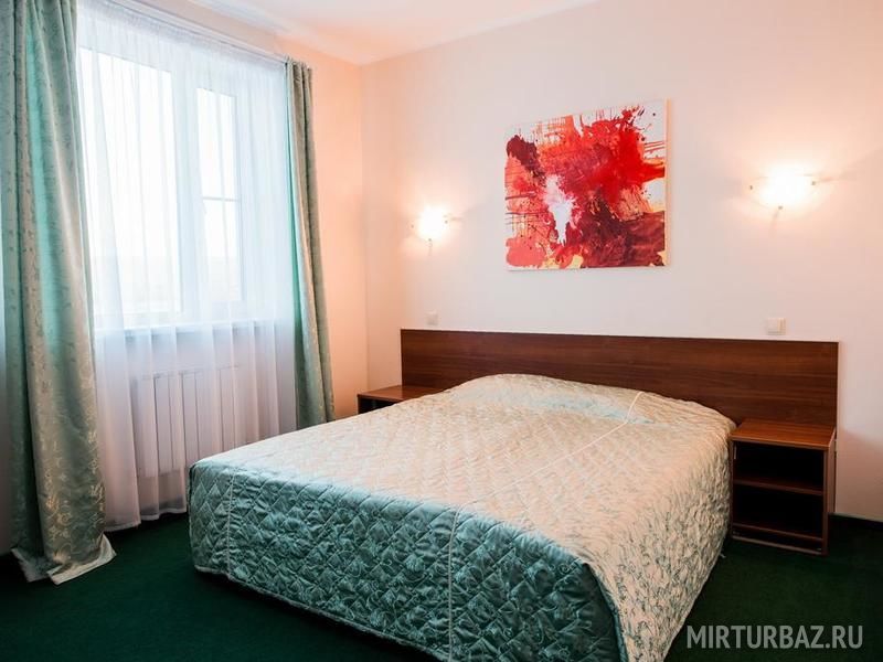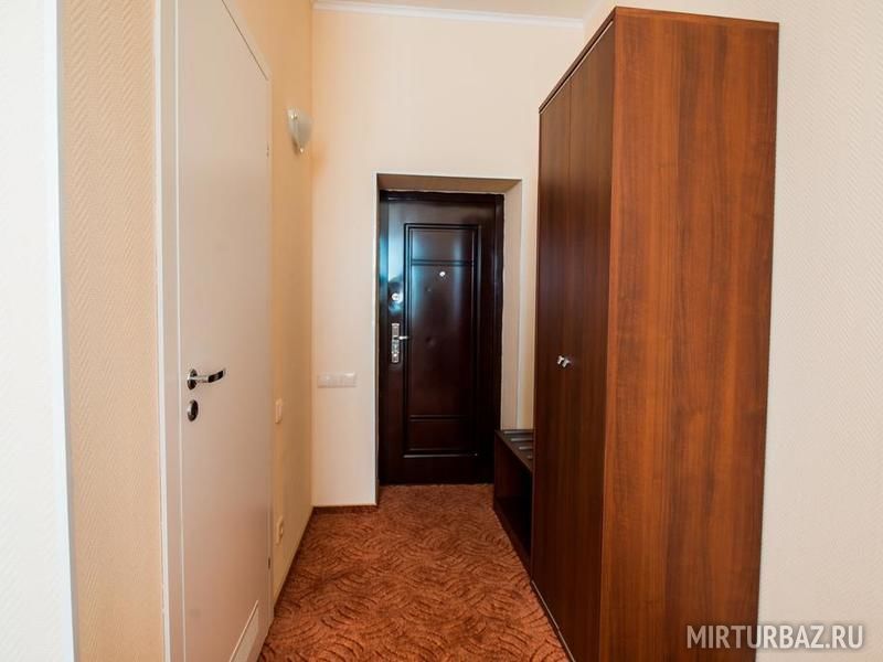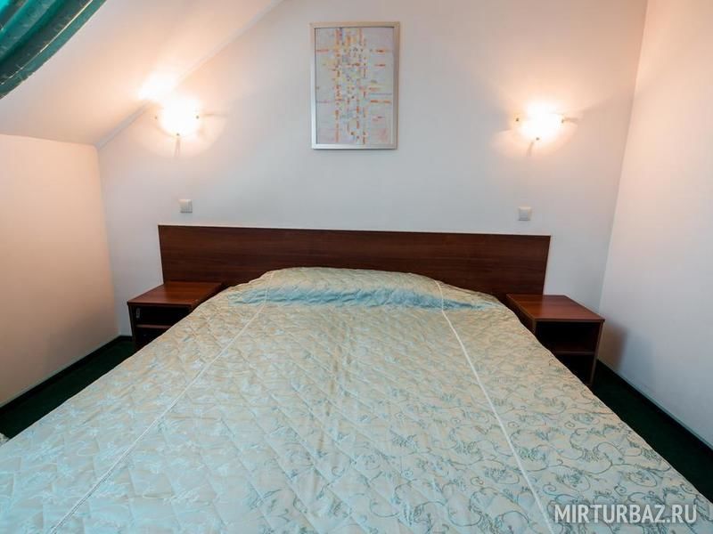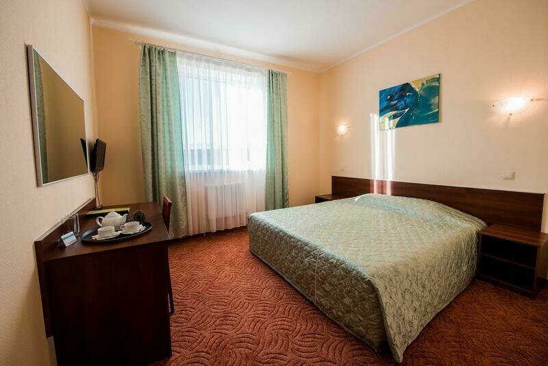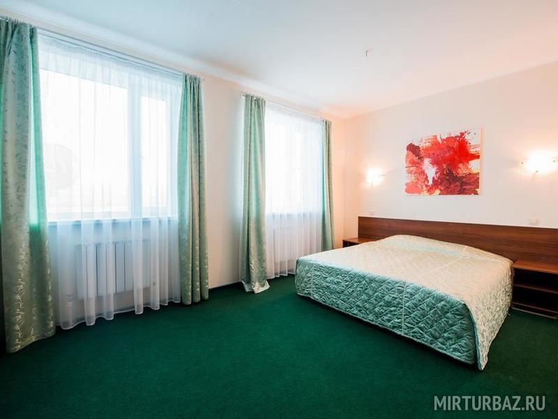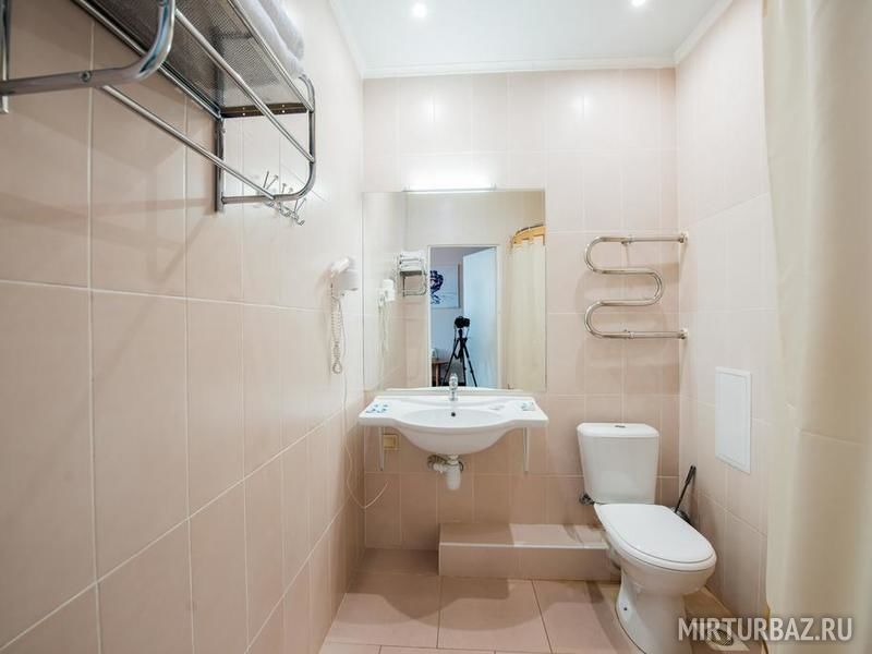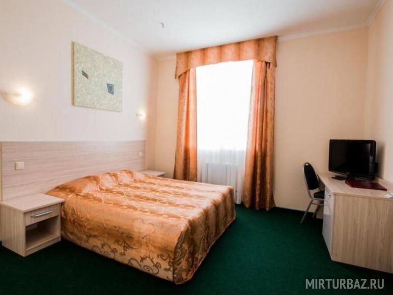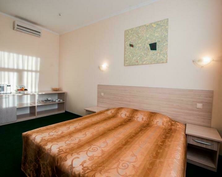 В номере: две кровати, универсальный стол, телевизор, стол, тумбочки, душ. Скомплектован одноразовыми принадлежностями, халатами. Дополнительно: холодильник, чайник, набор посуды.