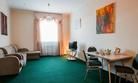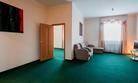 Номер с кондиционером, телевизором, феном и туалетными принадлежностями. Отличается просторной планировкой и наличием холодильника и электрического чайника. Ванная комната укомплектована феном, купальными халатами и тапочками. Также в числе удобств мини-кухня и гостиный уголок.