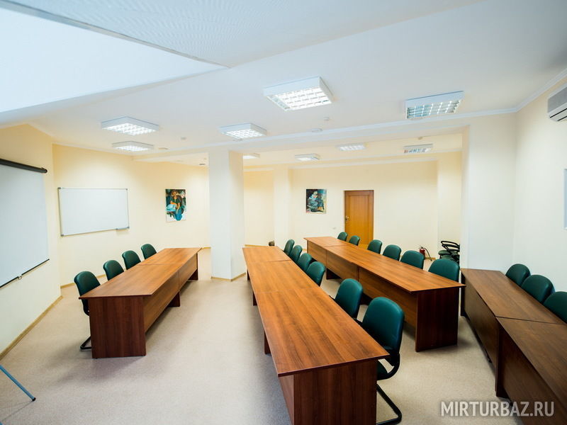 Небольшой комфортный, светлый конференц-зал вместимостью до 30 человек прекрасно подходит для проведения семинаров, тренингов, конференций, встреч с деловыми партнерами.
