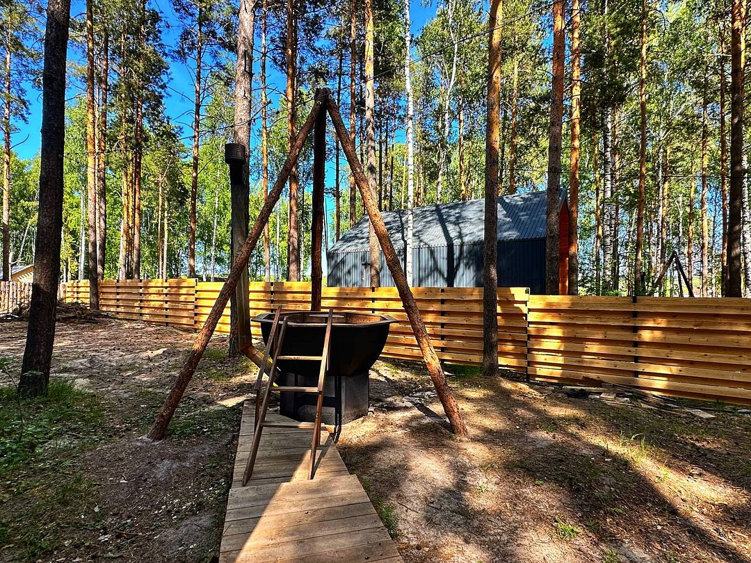 Барнхаус расположен на закрытой территории, среди живописных сосен. На территории коттеджа Вас ждут: жаркий банный чан, летняя банкетная зона с мангалом на 6 персон и уютная костровая зона, где вы сможете насладиться общением у потрескивающего костра (не забудьте взять дрова).