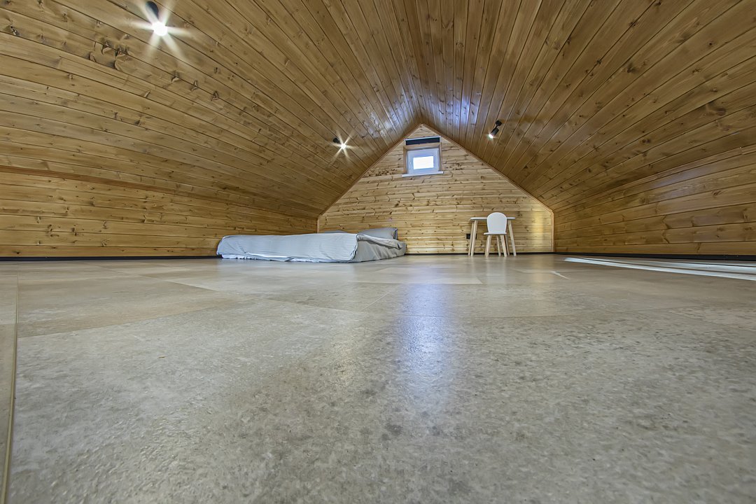 - 6 спальных мест (двуспальная кровать в комнате на первом этаже, двуспальный диван на первом этаже и двуспальная кровать в комнате на втором этаже);