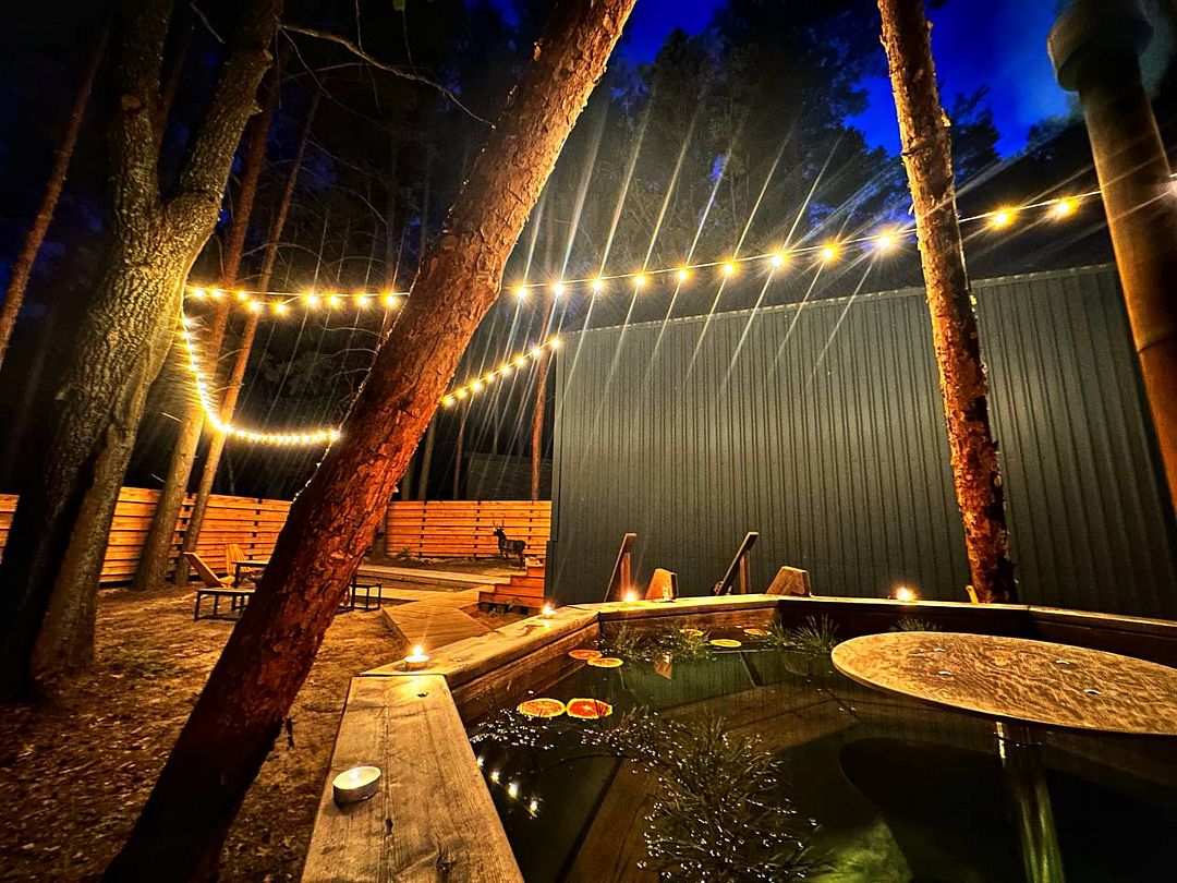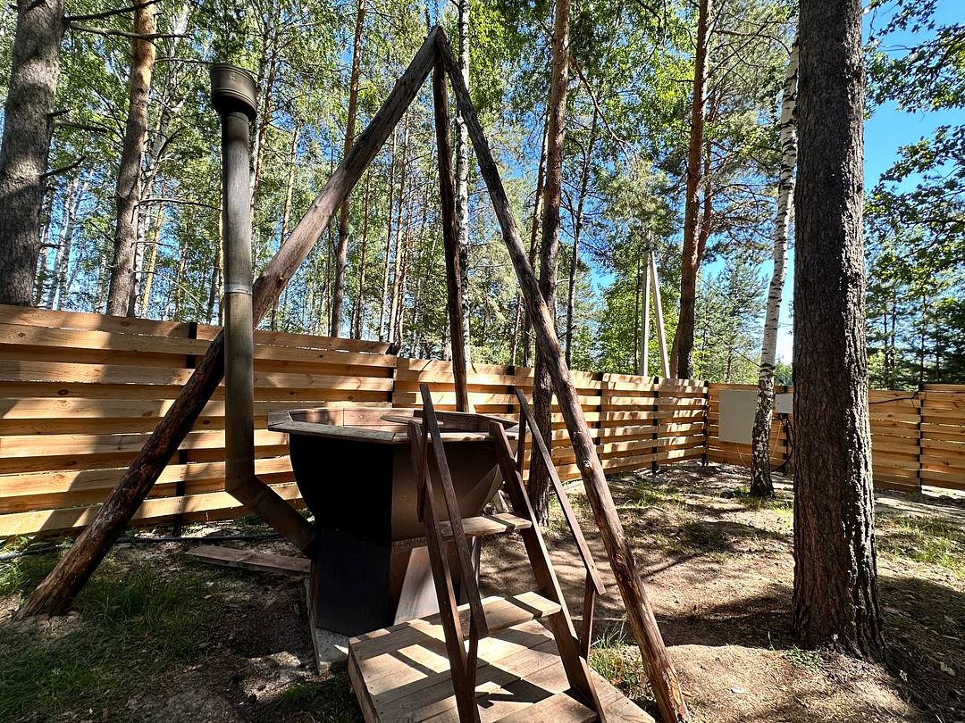 На закрытой территории, среди соснового леса, вас ждут: банный чан, банкетная зона с мангалом (на 6 человек), и зона для отдыха у костра (дрова — с собой!).