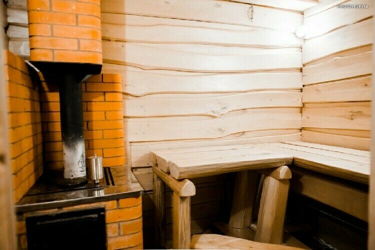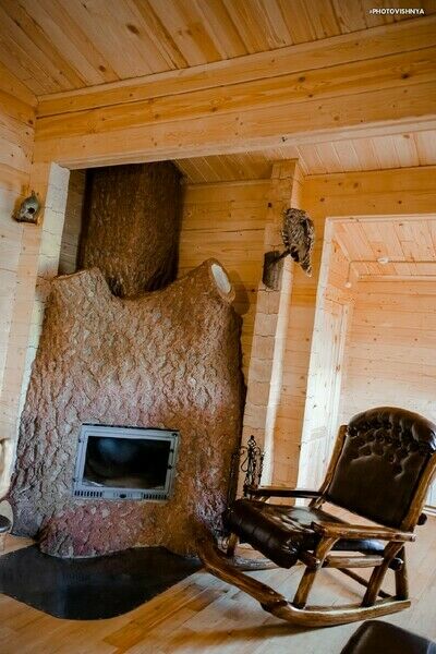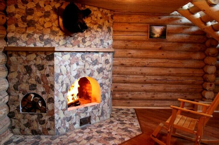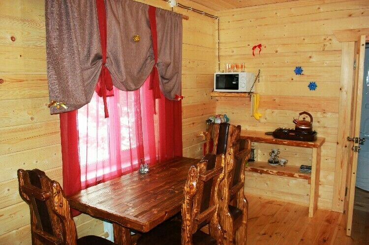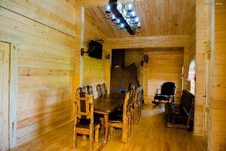 В каминном зале оригинальный действующий камин, большой банкетный стол, просторный диван для отдыха. Телевизор с приемником, более 100 каналов. Кухня оборудована мебелью, холодильником, СВЧ печью.