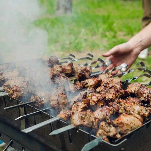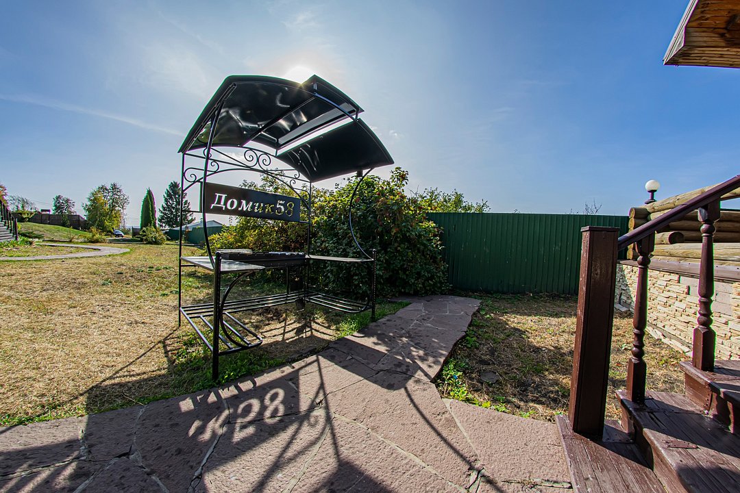 На участке есть крытая зона барбекю с мангалом. Решетки и шампуры в наличии.