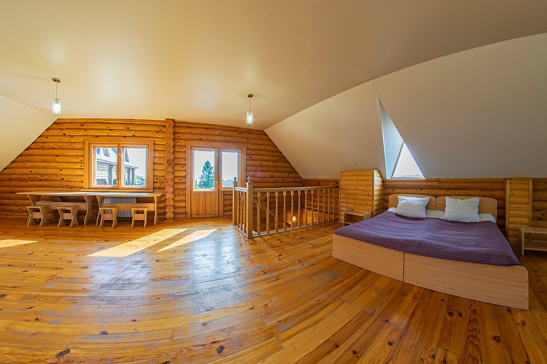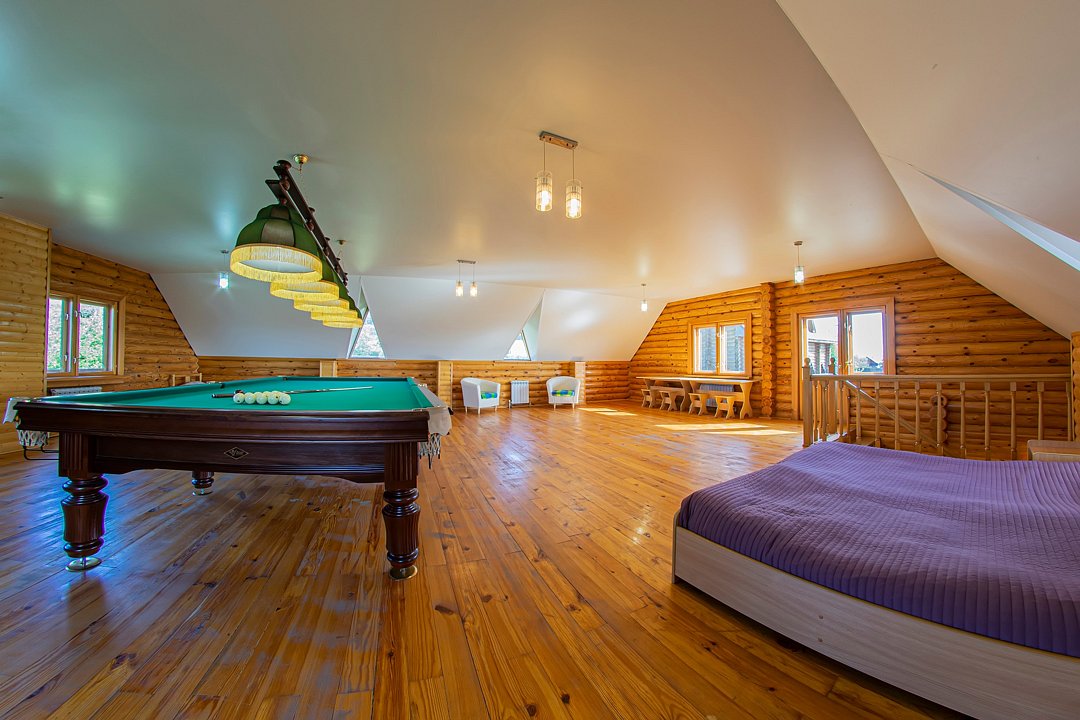 Двухэтажный дом в старорусском стиле точно никого не оставит равнодушным! Главная фишка этого домика - русский бильярд, который придется по душе как профессионалам, так и любителям. Внутри домика есть настоящая русская банька на дровах, с купелью и отдельным санузлом. Около домика есть прекрасный бассейн, общий с домиком «Емеля».