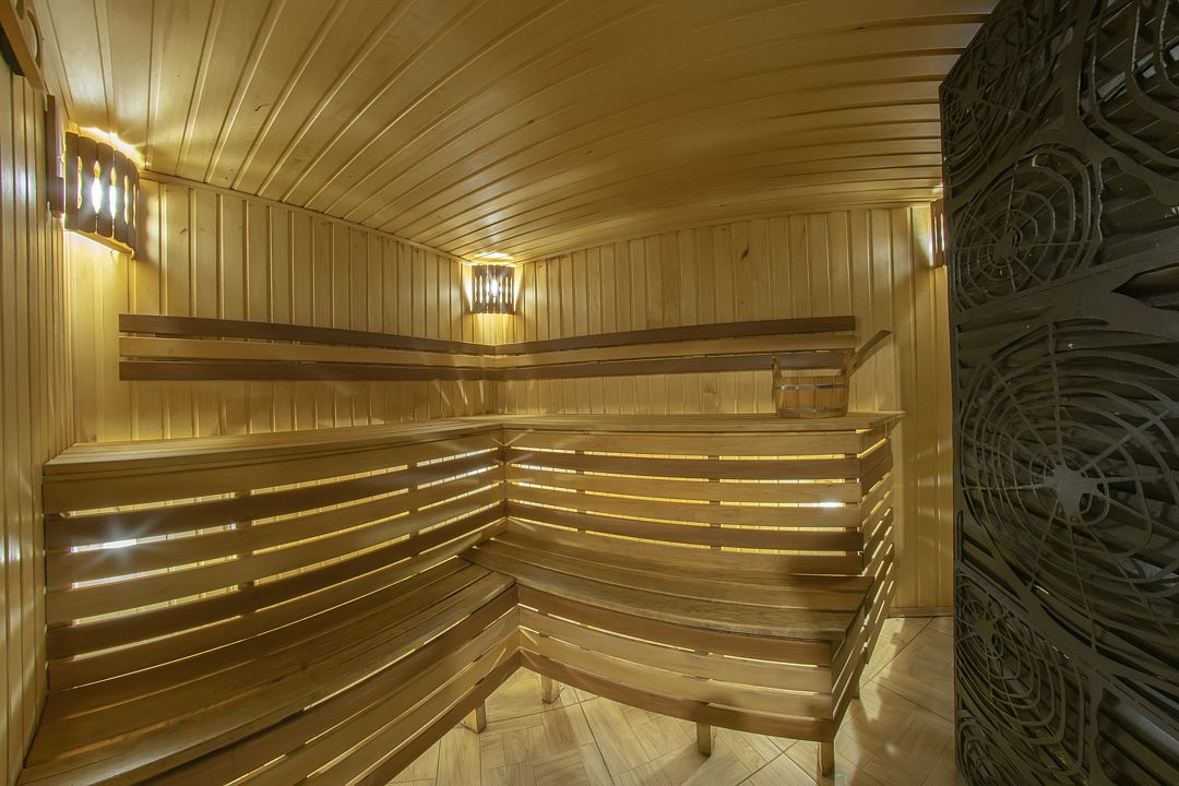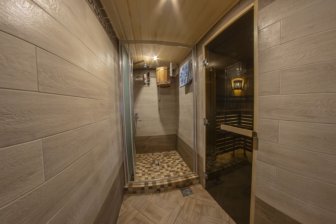 Главная изюминка коттеджа — настоящая русская баня на дровах и сезонный джакузи.