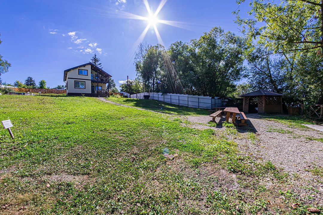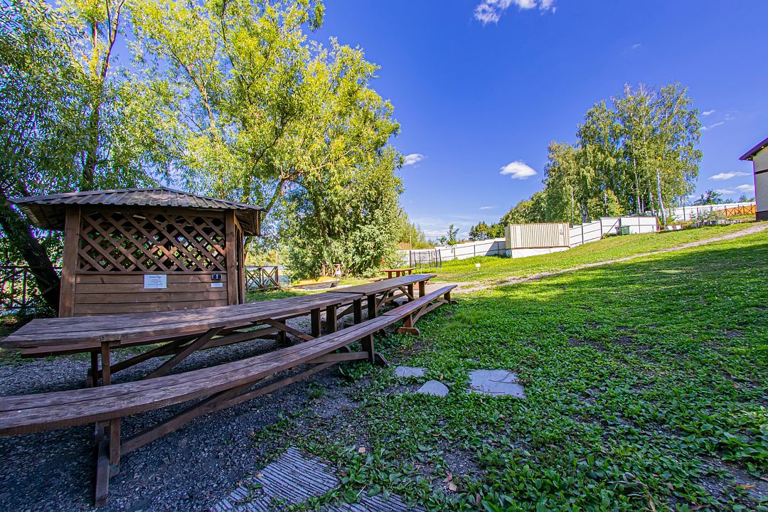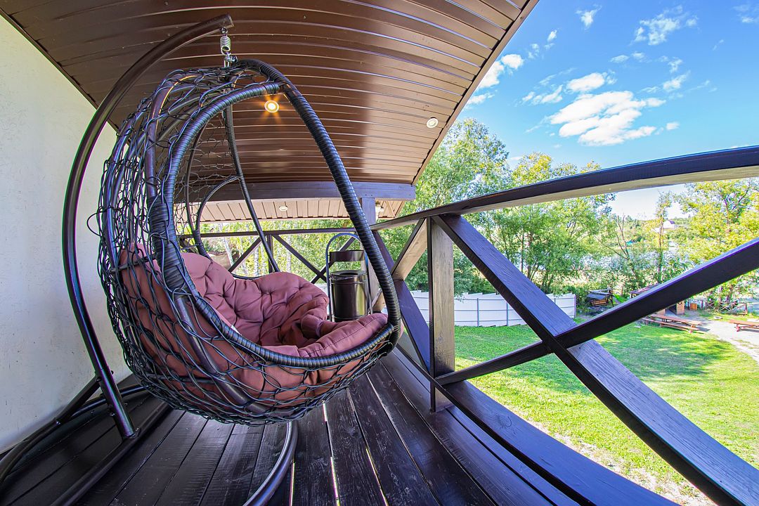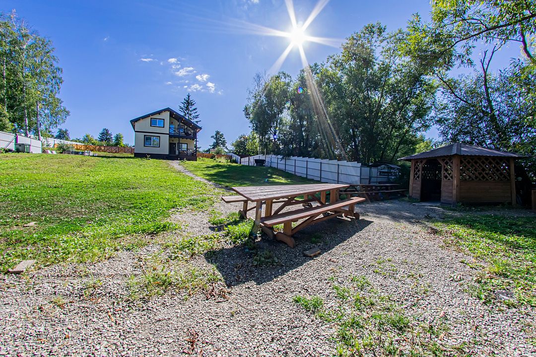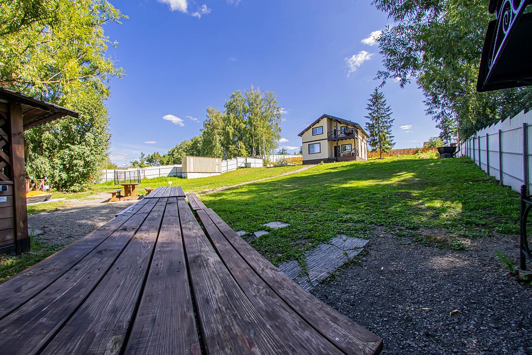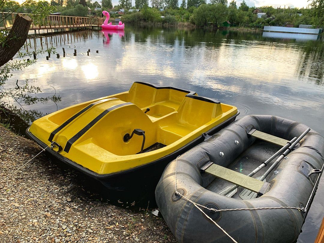 Территория коттеджа предлагает множество развлечений: купание в озере, катание на сапбордах и катамаранах, рыбалка, а зимой — ватрушки и горку.