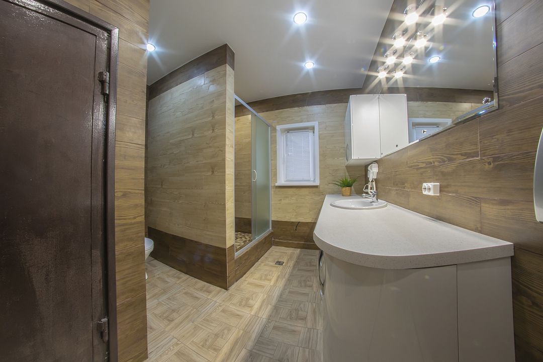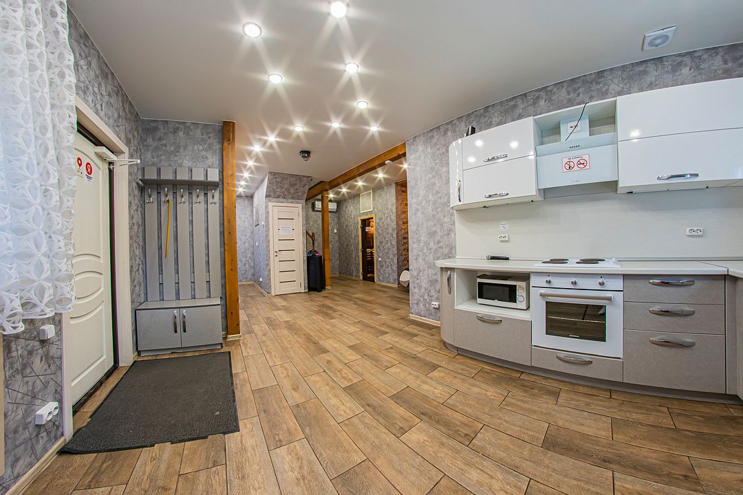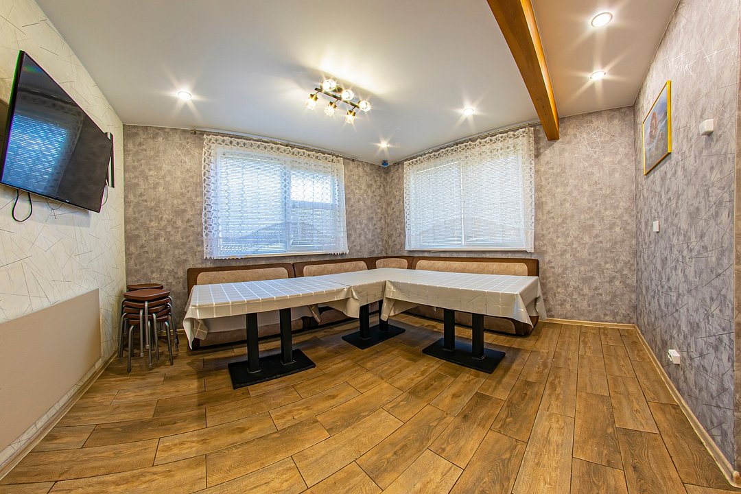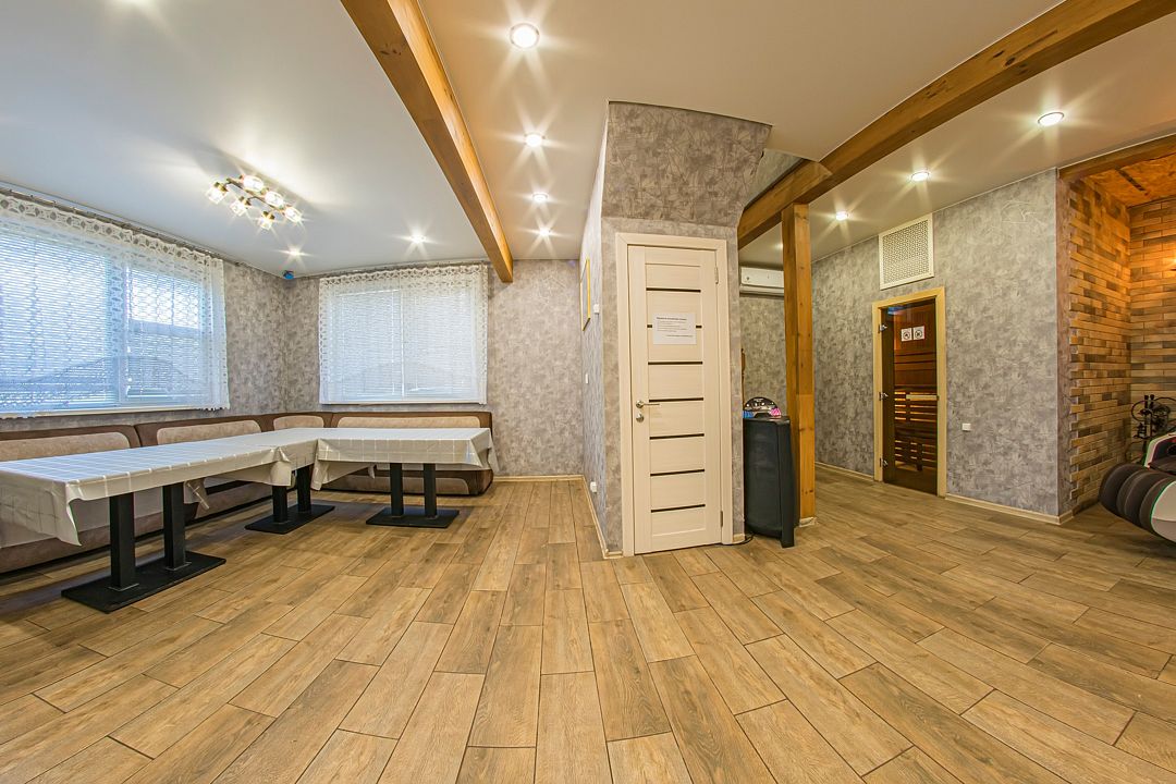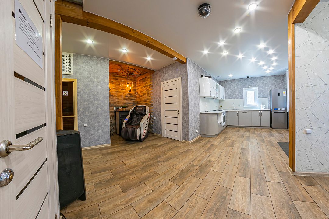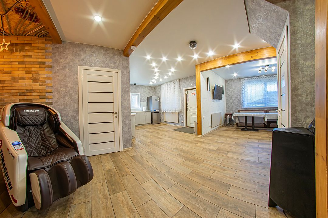 В просторном коттедже вас ждёт сауна, полностью оборудованная кухня, уютная гостиная с камином и массажным креслом, большая столовая, а также караоке, мощная стереосистема и светомузыка для зажигательных вечеринок.