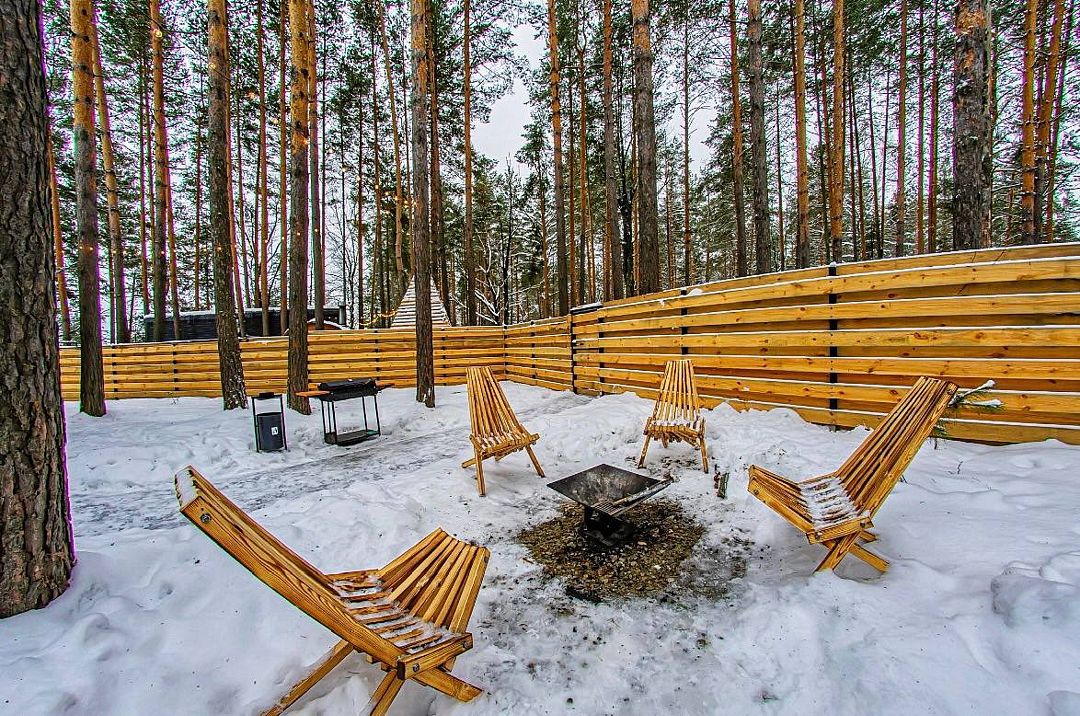 На территории есть жаркий банный чан и уютная банька на дровах, а также костровая зона, где вечером можно отдохнуть в компании близких друзей, наслаждаясь атмосферой, музыкой, чаем и душевными разговорами.