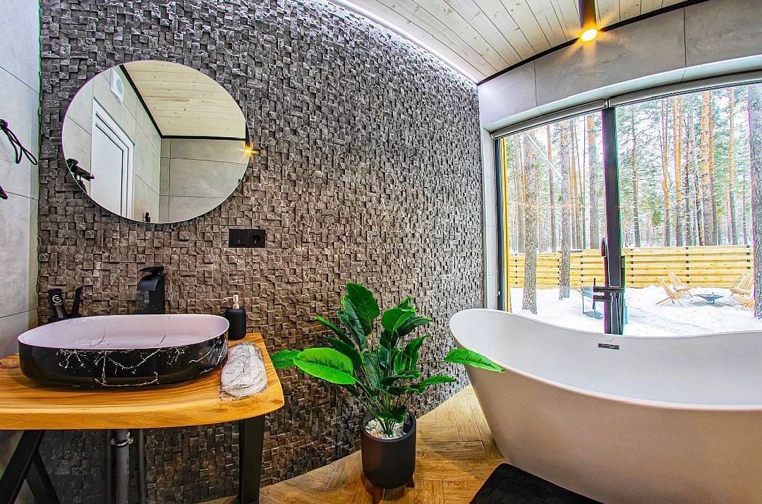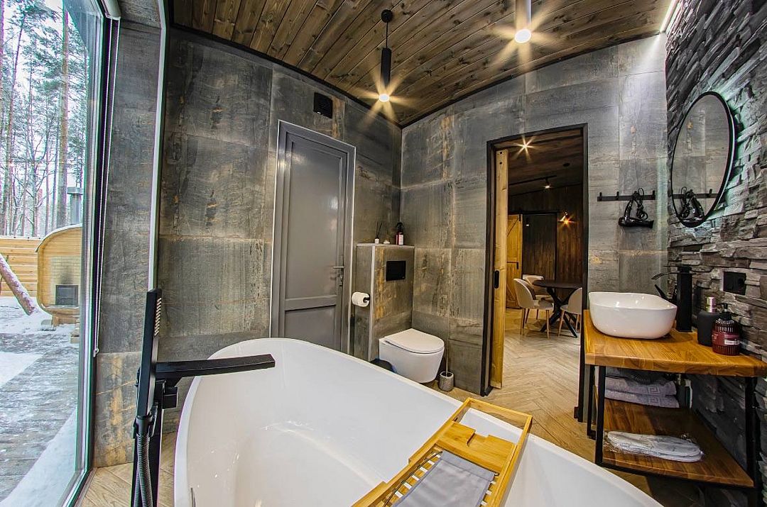 Вилла в сосновом лесу предлагает все для незабываемых моментов: расслабьтесь в инстаграмной ванне, наслаждайтесь романтикой под звездами в банном чане , погрейтесь в дровяной бане для расслабления.