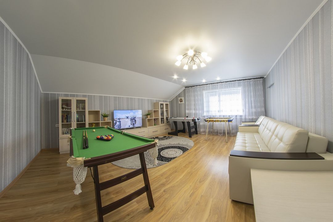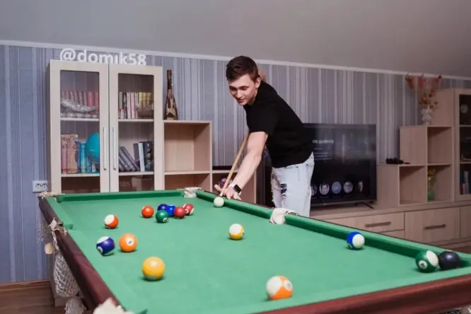 Бильярд — это увлекательная игра, способная объединить людей разных возрастов и профессий. Это отличный способ провести время с друзьями или коллегами, развить свои навыки и получить заряд положительных эмоций. В коттедже есть бильярдный стол, который уже включен в стоимость домика и шикарно разнообразят ваш отдых!