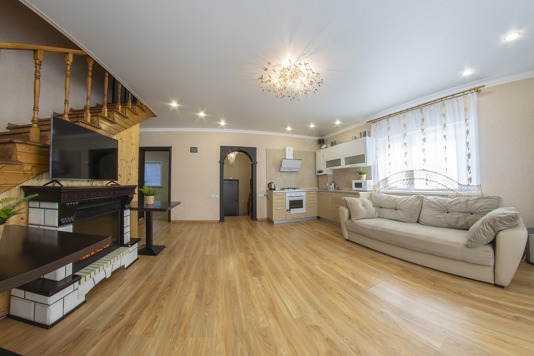 На первом этаже есть просторная банкетная зона и комната-танцпол с мощной стереосистемой. Комната с уютным камином, телевизором и диваном подходит как для тихих посиделок, так и для шумных вечеринок.