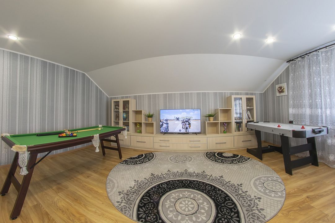 На втором этаже расположена игровая комната с X-box, бильярдным столом и аэрохоккеем, в которой найдут себе развлечение по душе и взрослые, и дети. Есть инфракрасная сауна с джакузи — для расслабления и полного релакса. Также здесь расположены две спальни, одна из которых оснащена детской кроваткой и массажным креслом.