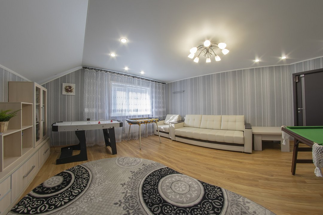 В нем предусмотрено все для комфортного времяпрепровождения: банкетная зона, инфракрасная сауна с джакузи, игровая комната с X-box, бильярдом и аэрохоккеем, а летом — каркасный бассейн.