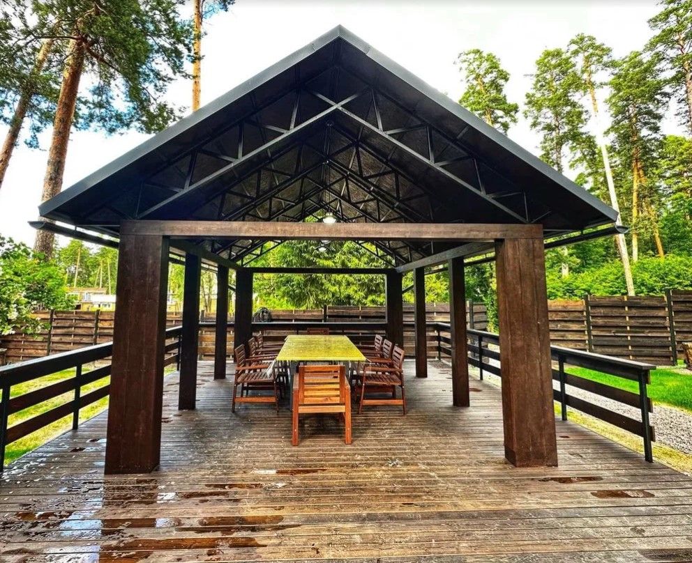 Читать полностьюЛетняя беседка с крышей для отдыха в любую погоду на 20 посадочных мест — это уютное и комфортное место, где вы сможете наслаждаться теплыми летними днями в кругу близких и друзей. Беседка имеет открытую планировку, что позволяет свободно проникать солнечному свету и свежему воздуху. Внутри беседки установлены удобные скамейки и столы, которые позволяют комфортно разместиться большой компании.