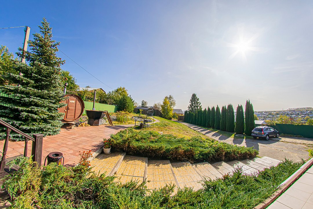 Домик в старорусском стиле величественно возвышается на одной из самых высоких точек города. Коттедж с самой настоящей русской печкой погружает в атмосферу старинной сказки.