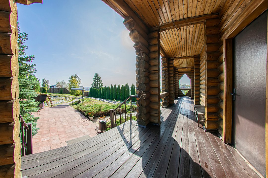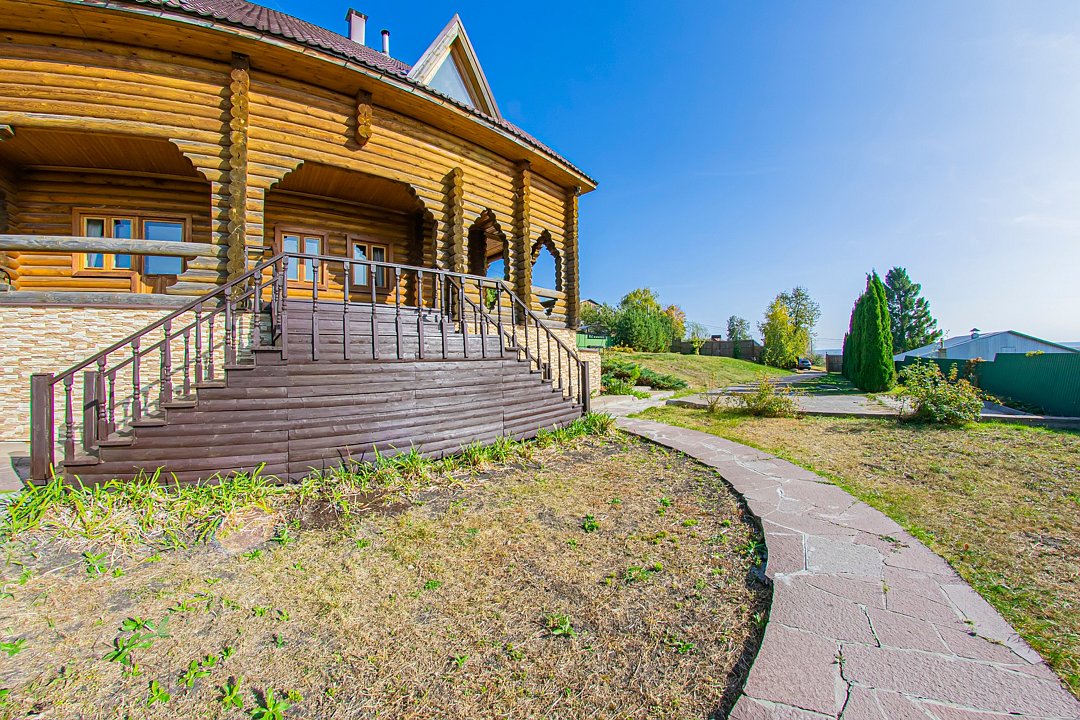На одной из самых высоких точек города величественно стоит двухэтажный коттедж в старорусском стиле с баней «Емеля» — воплощение настоящей русской сказки.