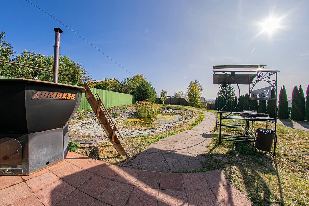 На живописном участке расположена баня-бочка и жаркий банный чан на дровах — отличный способ расслабиться после праздничных мероприятий. Для любителей блюд, приготовленных на огне, предусмотрен мангал.