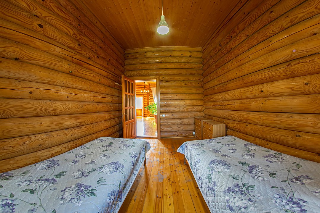 - 12 спальных мест (3 отдельные комнаты с двуспальными кроватями на 2 этаже, комната с двумя односпальными кроватями, раскладной диван на 2 спальных места, на первом этаже раскладной диван на 2 спальных места);