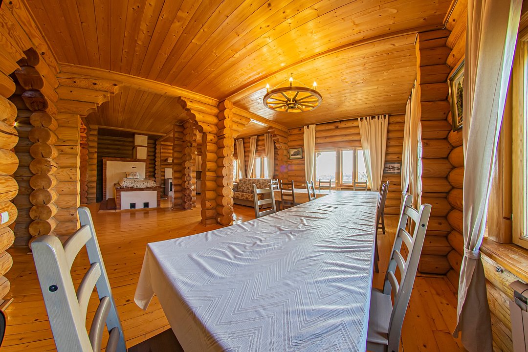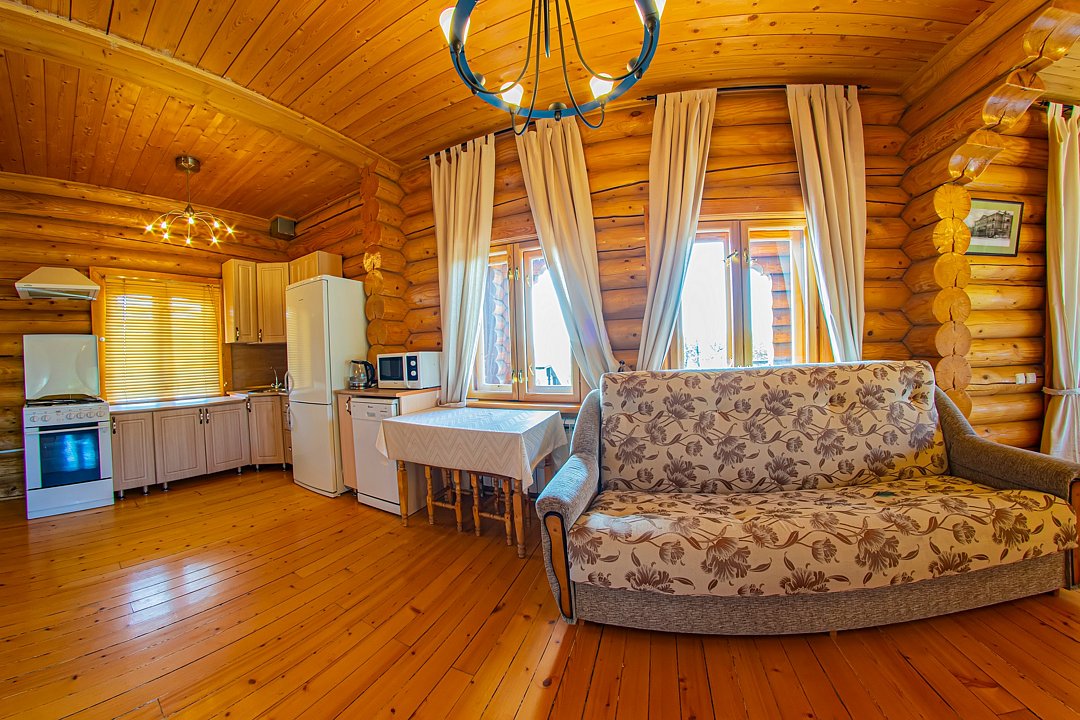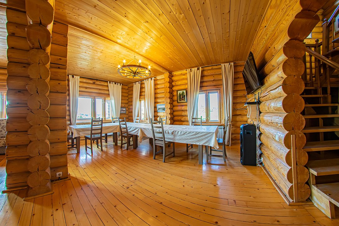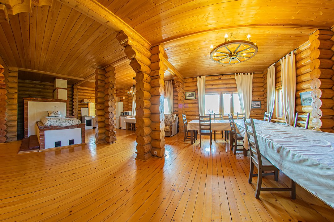 Внутри вас ждет уютная обстановка, широкая гостиная, кухня и большими столами, а также настоящая русская печь, которая согреет и погрузит в атмосферу Древней Руси.