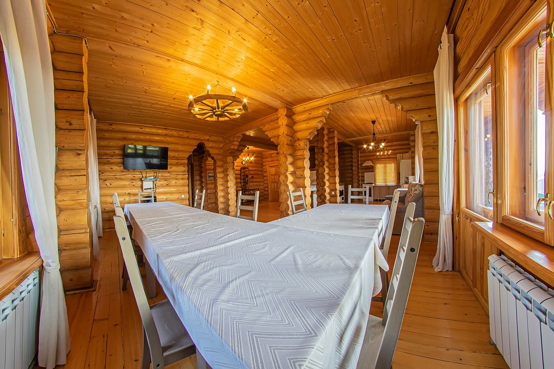 Двухэтажный дом в старорусском стиле идеально подойдет для любого праздника! Можно растопить печь или отлично провести время в просторной гостиной с кухней и большими столами.