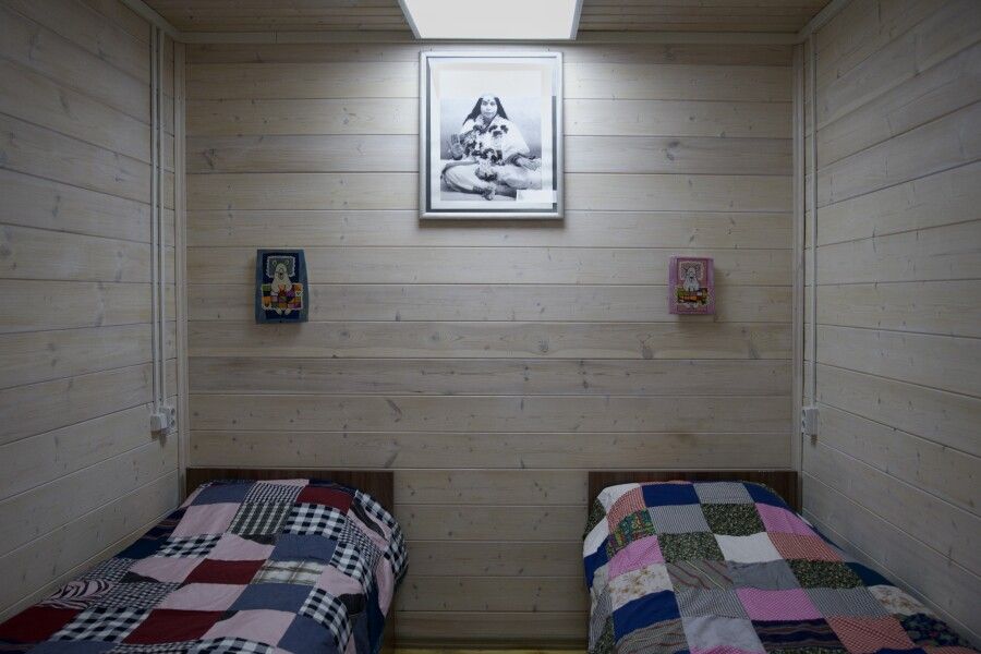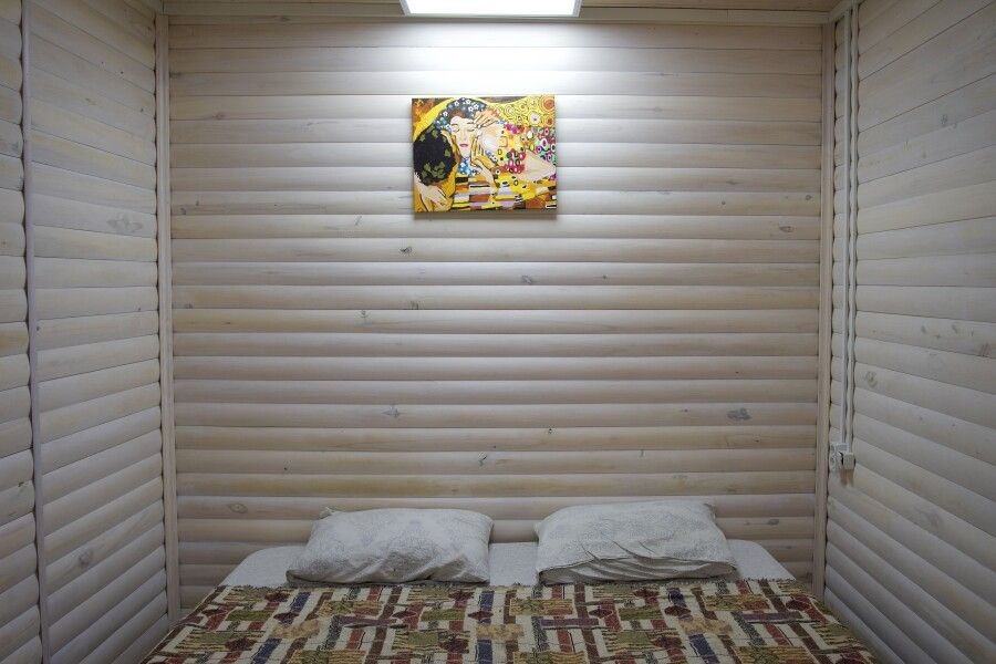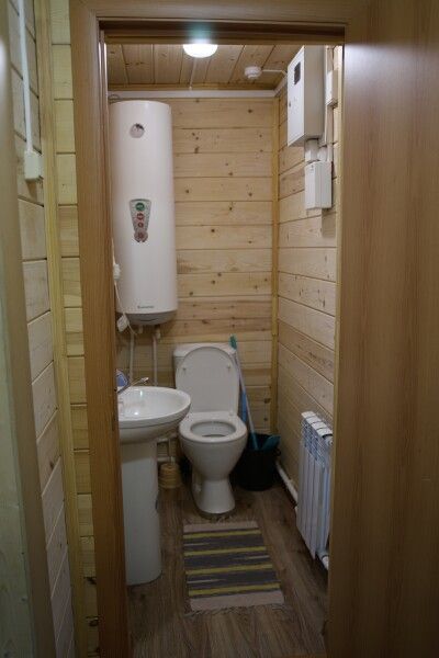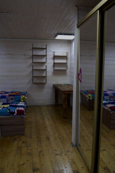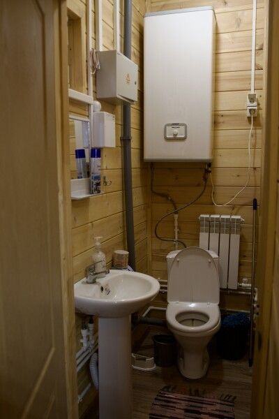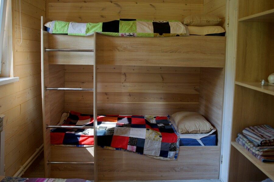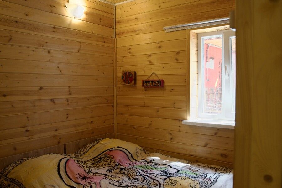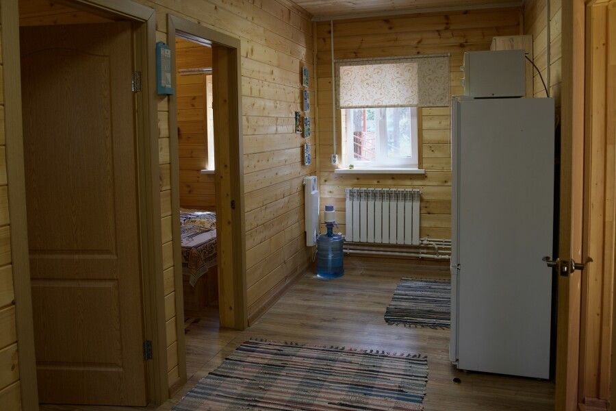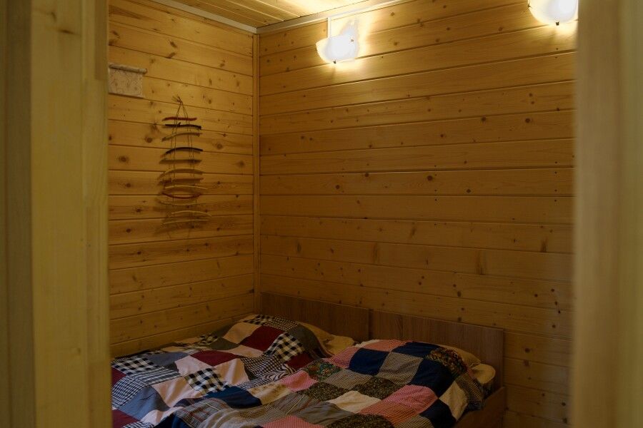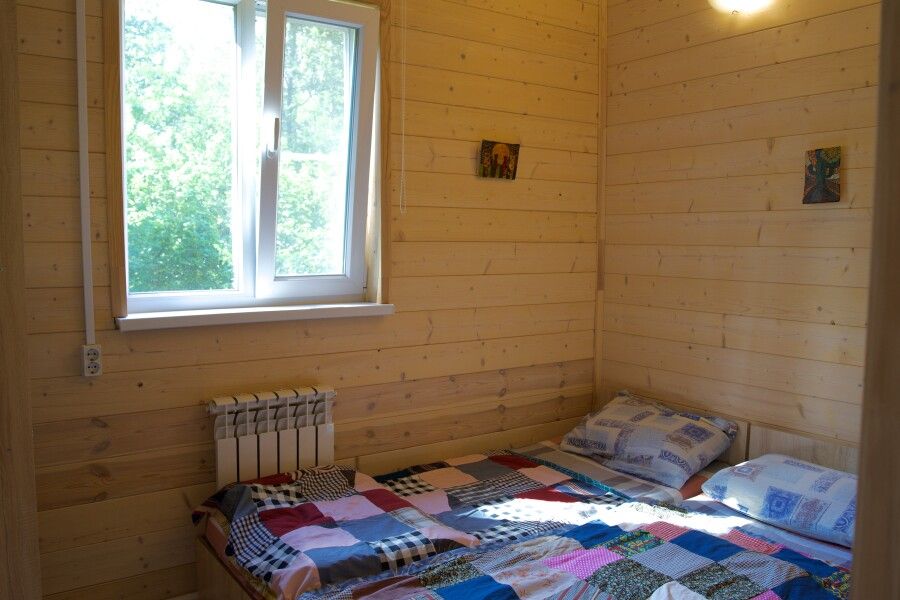 Дом на троих человек, разделен на две комнаты (на одного и на двоих человек). Одна двуспальная кровать и одна односпальная. В наличии кухня (холодильник, чайник, плитка, посуда). Предусмотрены раздельные санузел и душ.