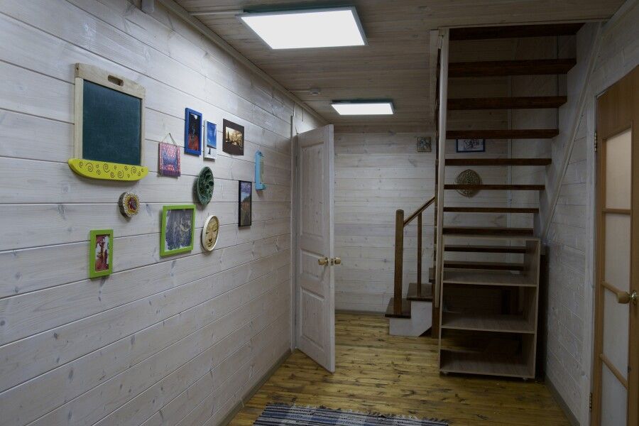 Дом на восемь человек с очень большой верандой, кухней, двумя санузлами с ваннами, двумя комнатами с двумя двуспальными кроватями. На втором этаже — две раскладушки для детей и две односпальные кровати.
