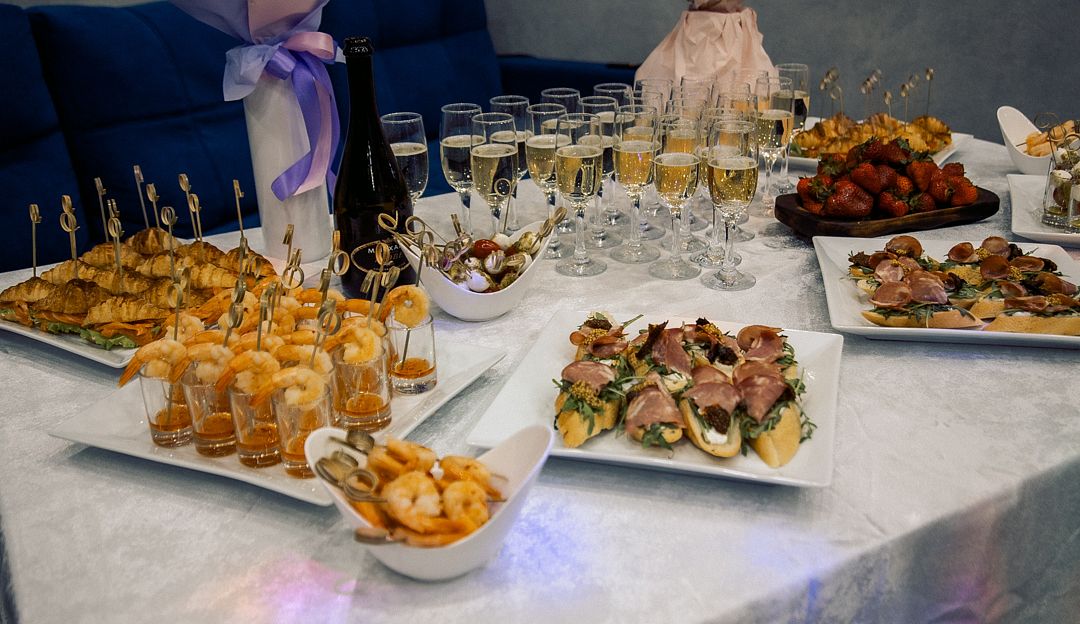 - набор посуды на 20 человек (глубокие тарелки, плоские тарелки, кружки для чая, бокалы под сок, рюмки, фужеры, ложки, вилки и ножи);