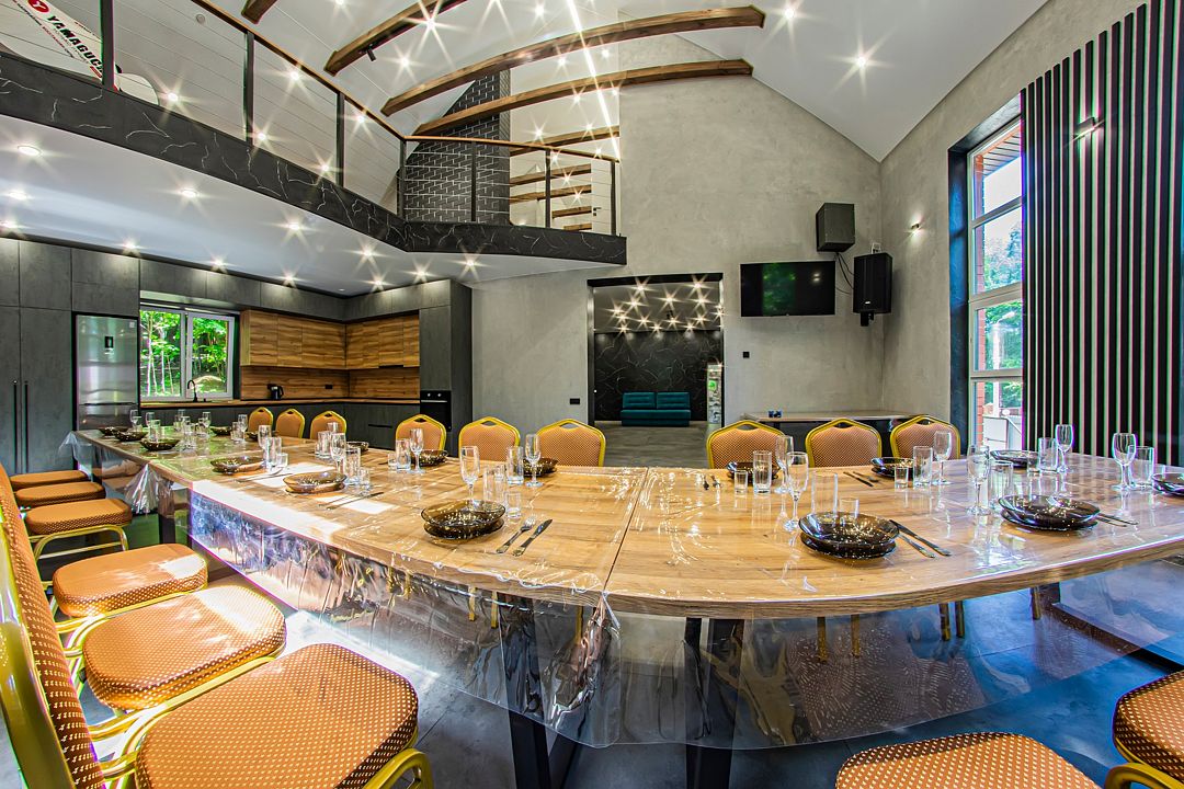 В коттедже есть банкетная зона на 40 посадочных мест.