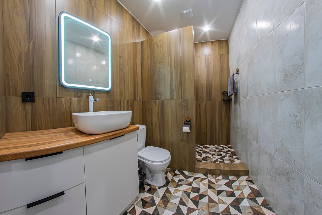 - полностью оборудованная кухня (микроволновая печь, электрический чайник, плита);