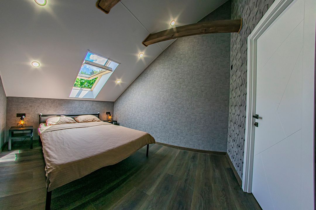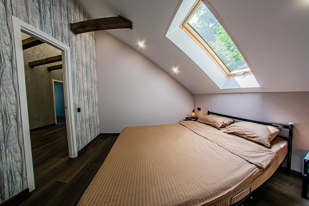 - 14 спальных мест (З отдельных спальни с двуспальными кроватями, 2 двуспальных дивана на первом этаже, большой диван на втором этаже на 4 спальных места);