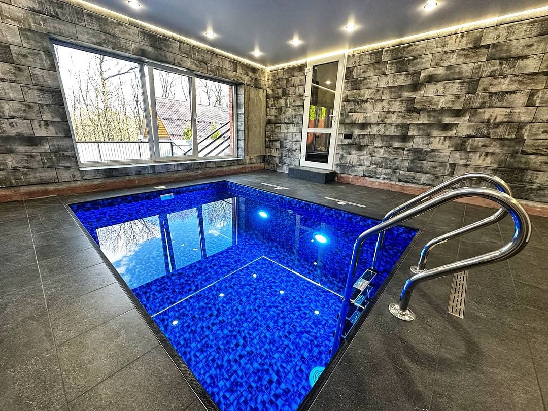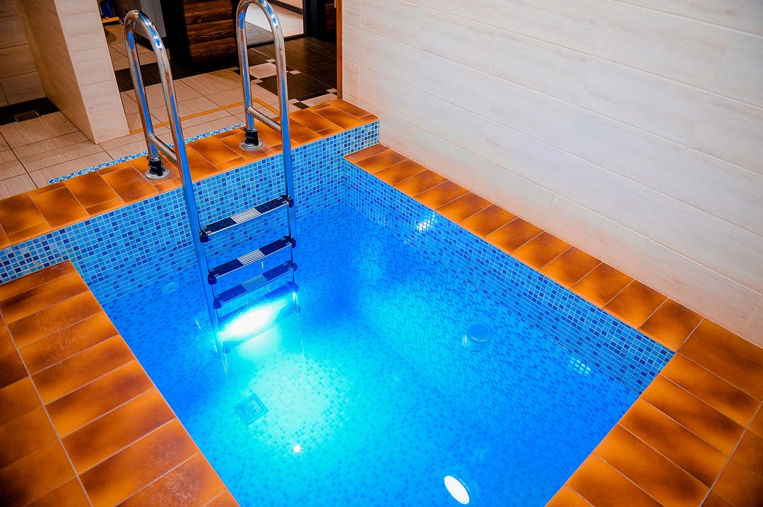 Тип бассейна: крытый бассейнРазмеры: 4.5 x 3.5 мГлубина: 170 смОтдых в коттедже с бассейном прямо в доме — мечта? Реальность! Представьте себе, как приятно окунуться в прохладную воду после жаркой сауны.