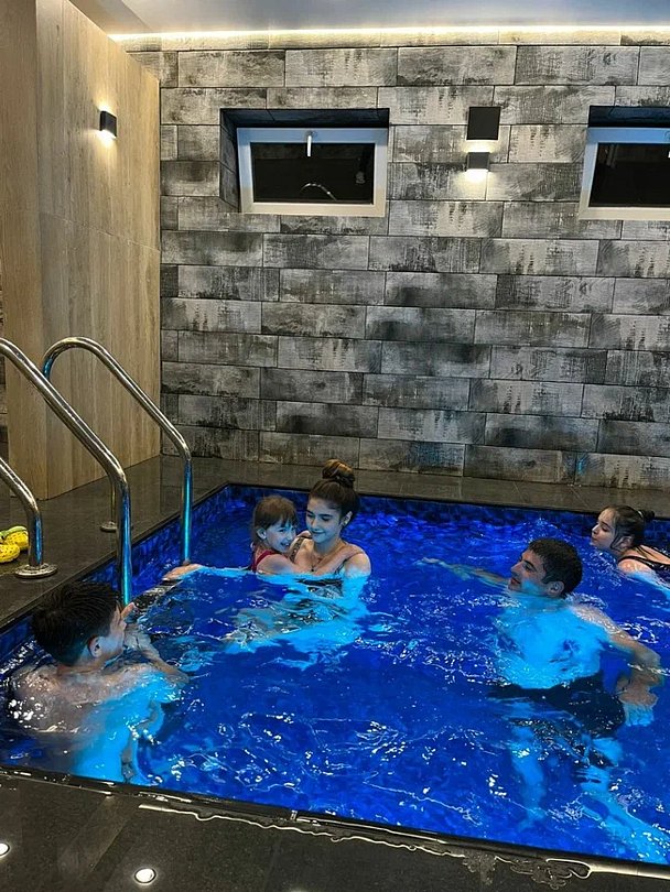 - бассейн в коттедже, размеры: 4,5 м*3,5 м, глубина 1,7м.