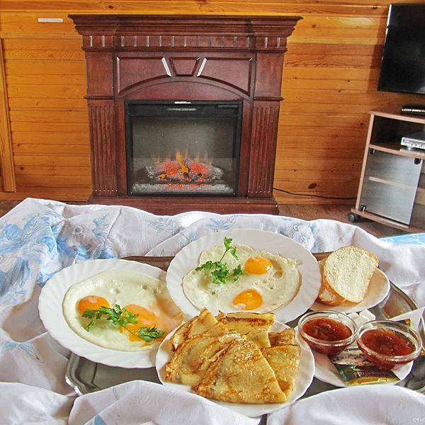 Входит в стоимость: парковка, проживание, завтрак с 10.00 часов, мангальная зона, уличный бассейн с подогревом (10.00-23.00), игровая детская площадка.