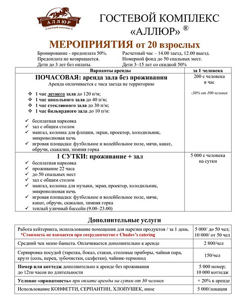 - для торжества — 200 ₽/человек (-30% от 100 человек);
