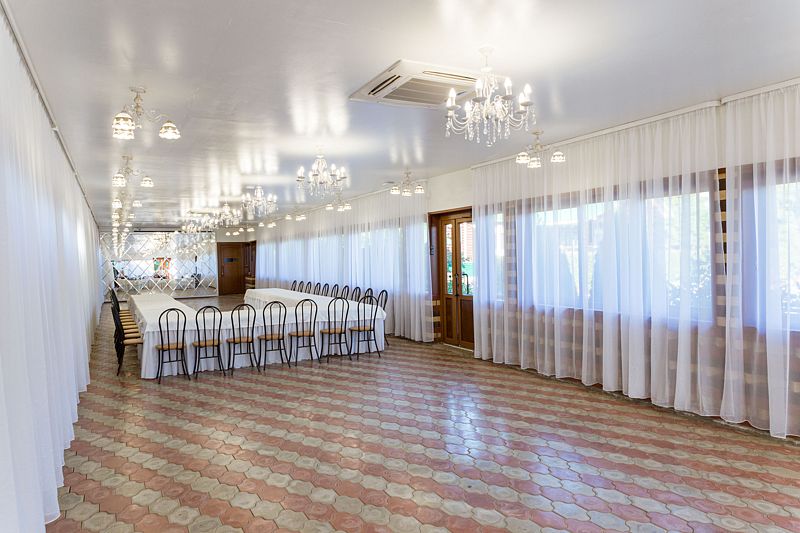 Гостевой комплекс с несколькими банкетными залами и обширными возможностями для развлекательных мероприятий позволяет организовать мероприятия любого формата: корпоративы, выпускные вечера, детские праздники и торжественные банкеты.